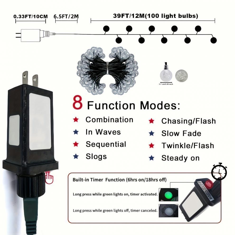 2026 Новый Кросс-Бордер Дропшиппинг Светящиеся Шаровые Светильники 49 Футов 100Светодиодов 8 Режимов Дистанционное Управление Кросс-Бордер