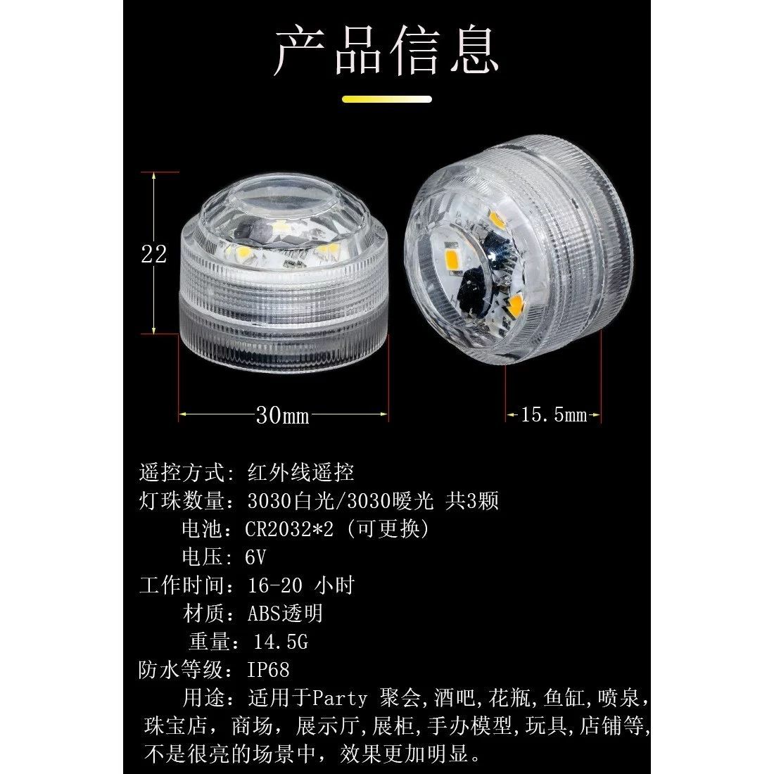 📦 | White light | 1 remote control with 12 lights | ¥33.58 / ≈ 404 ₽ | 10000 | 6145200674254 | |