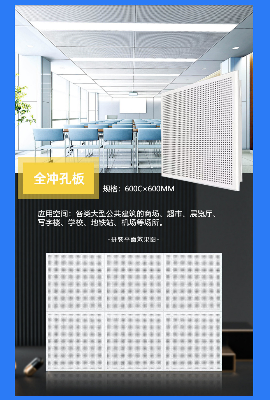 荣事德集成吊顶工程专用铝扣板600x600办公室车间医院铝天花