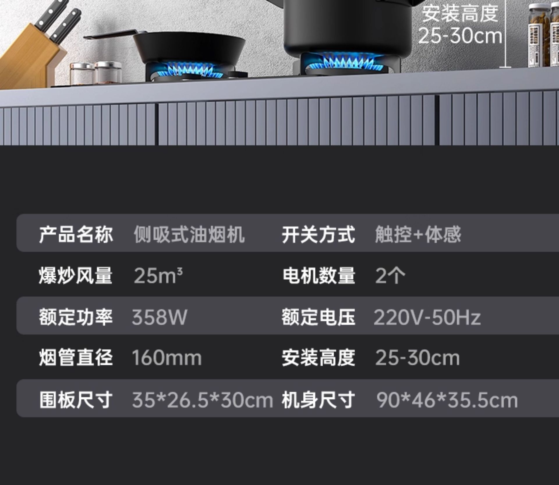 Комплект вытяжки Xianke с боковым всасыванием, газовая плита
