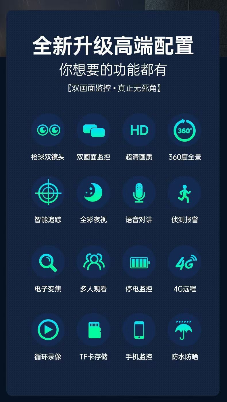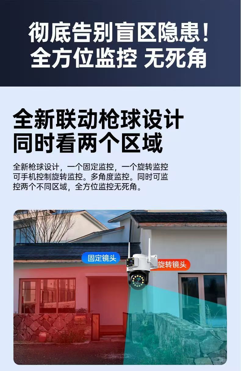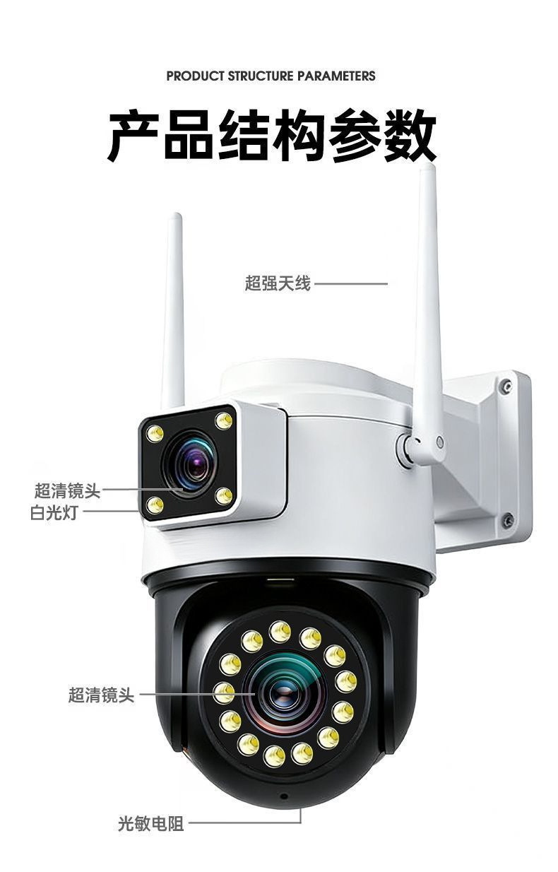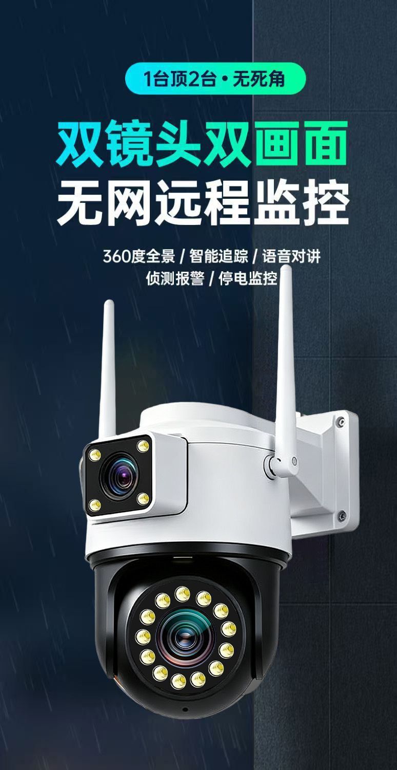 Двухобъективная 4G камера наблюдения без трафика для наружного использования, удаленный доступ с мобильного телефона без сети, 360 градусов вращение