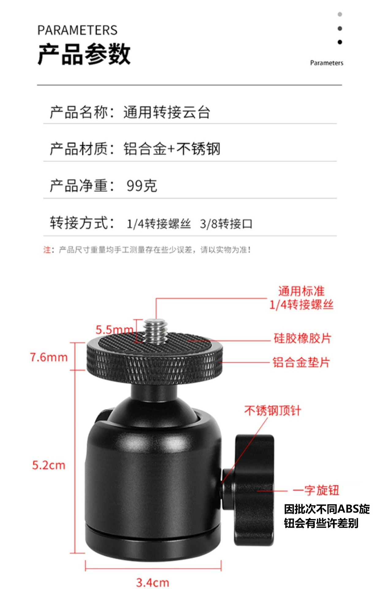 Номер товара 0002 three-hole 1/4 pan/tilt