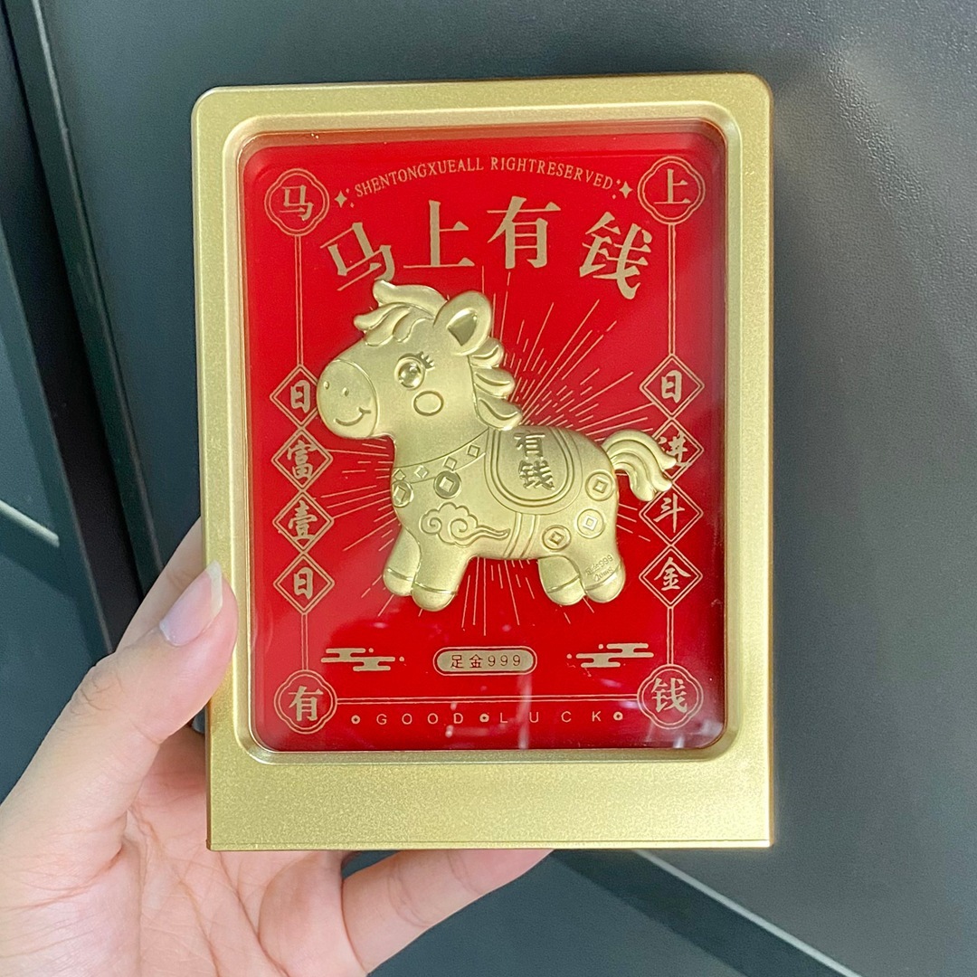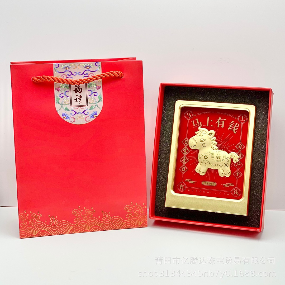 Орнаменты из бархатного песчаного золота Год Лошади, набор подарочной коробки и фоторамки, сувенир на ежегодную вечеринку, подарок на открытие, настольные украшения