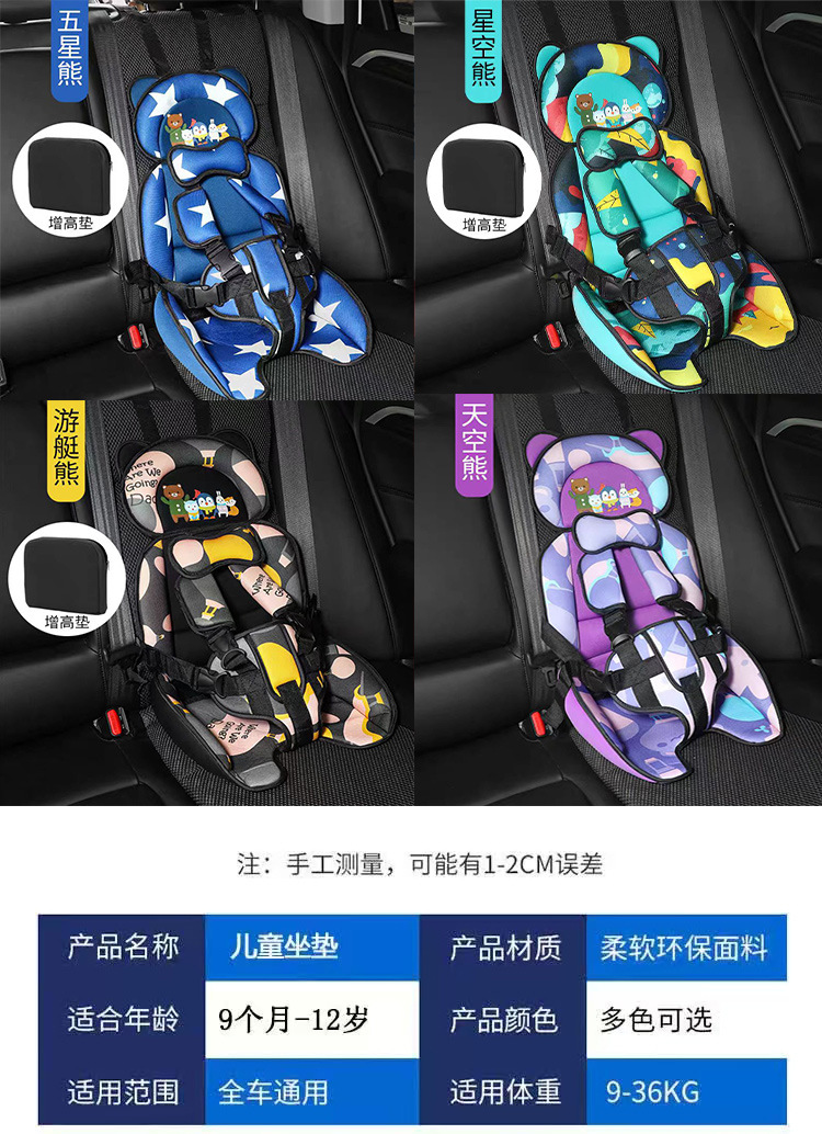 Портативная детская подушка для автокресла, для детей от 0 до 12 лет, мультяшный дизайн