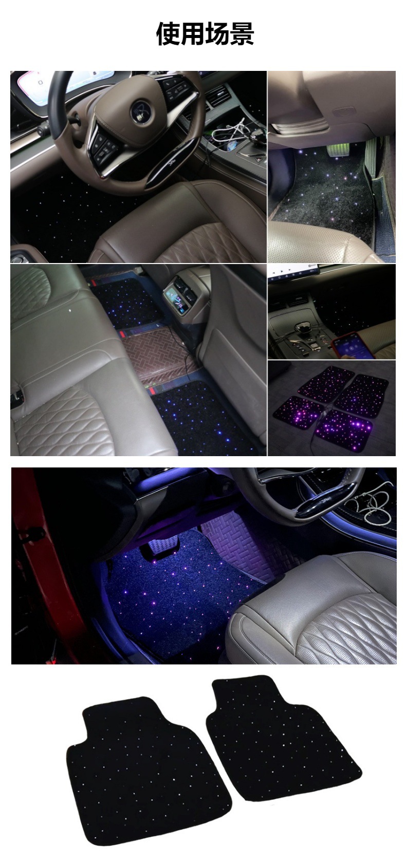 Ковер 'Звездное небо' для автомобиля, USB-питание, многоцветное ambient освещение, нейтральная модель, управление через приложение, оптоволоконный ковер для пола автомобиля