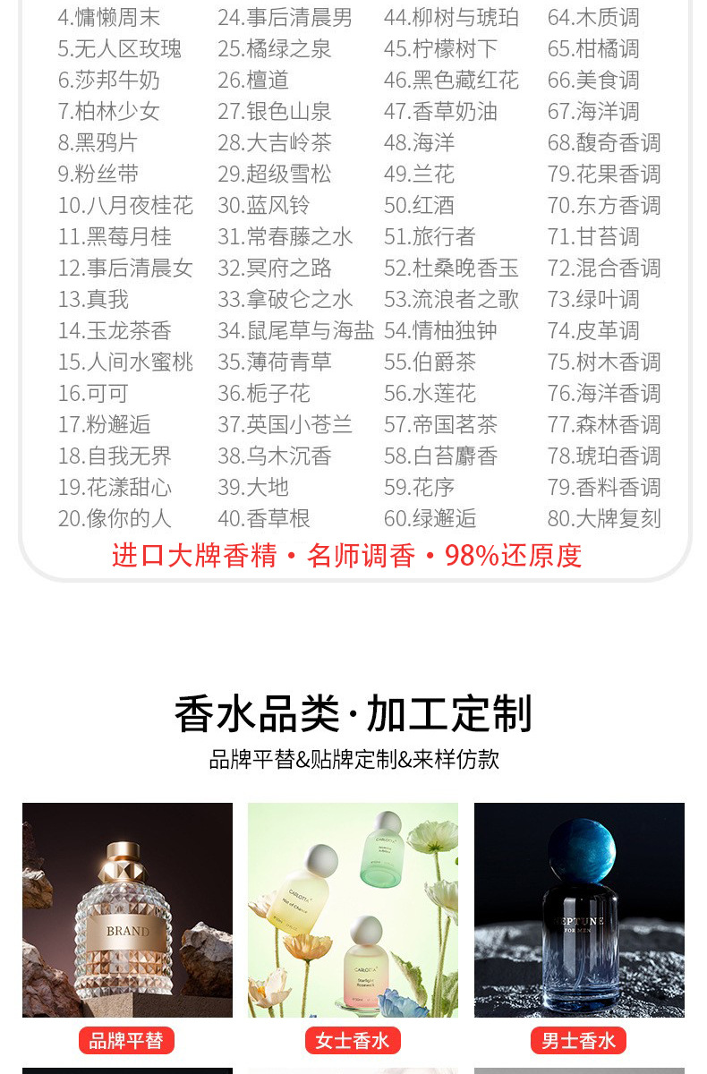 Тип обработки Brand replacement, women's perfume, men's perfume, unisex perfume, perfume gift box, solid perfume, fireless aromatherapy, car aromatherapy, candle aromatherapy