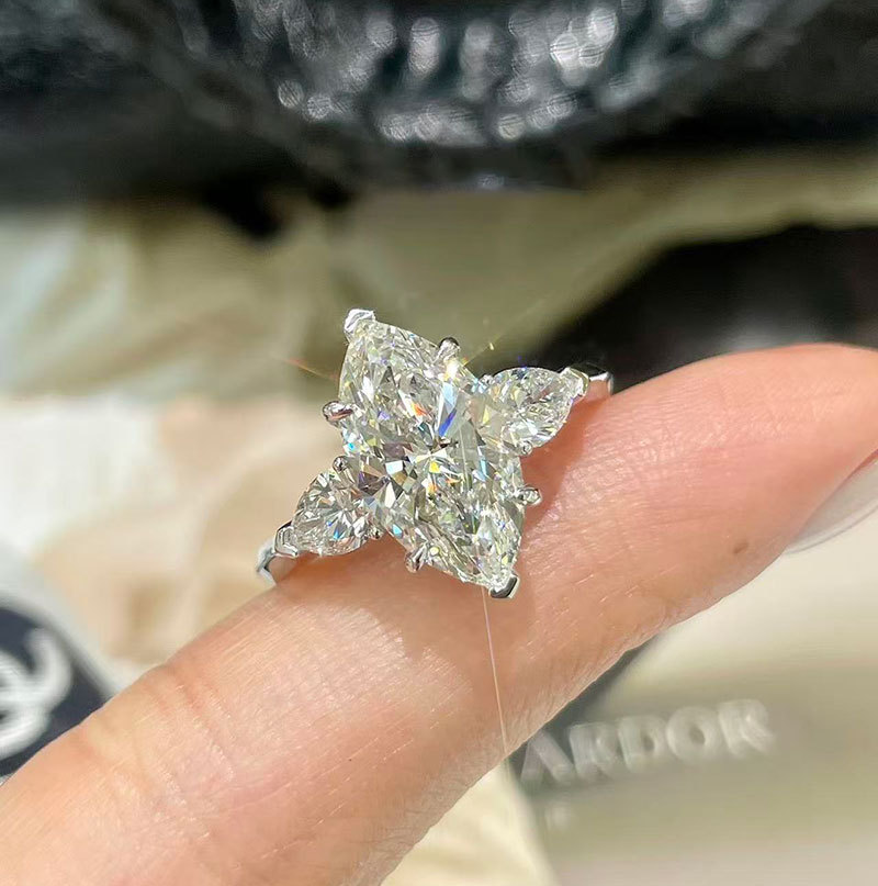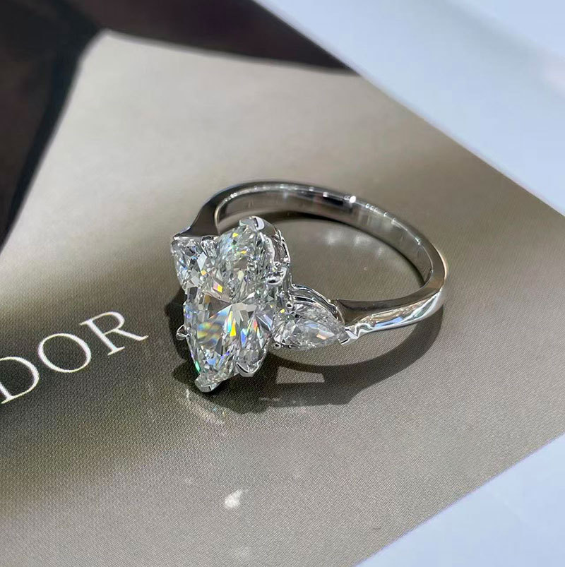 Кольцо из платины Pt950 с выращенным бриллиантом, 2 карата, марquise, цвет D, VS, роскошное и элегантное, индивидуальный заказ из золота и бриллиантов