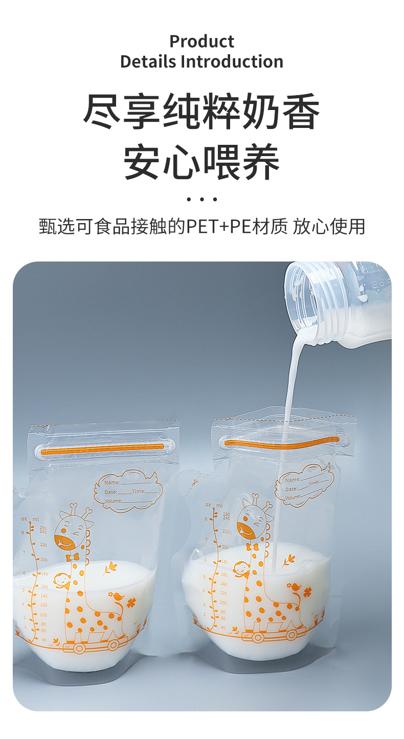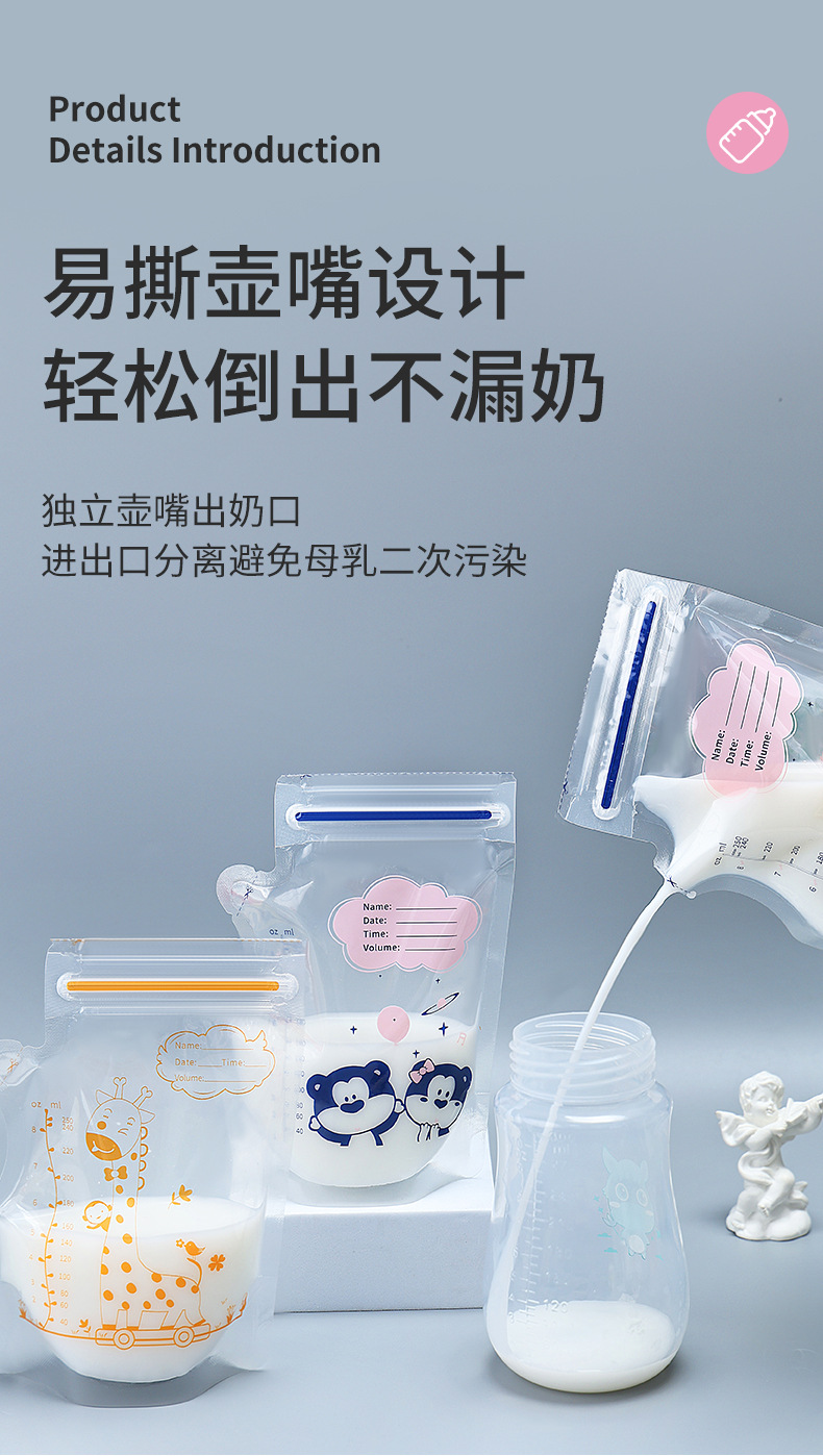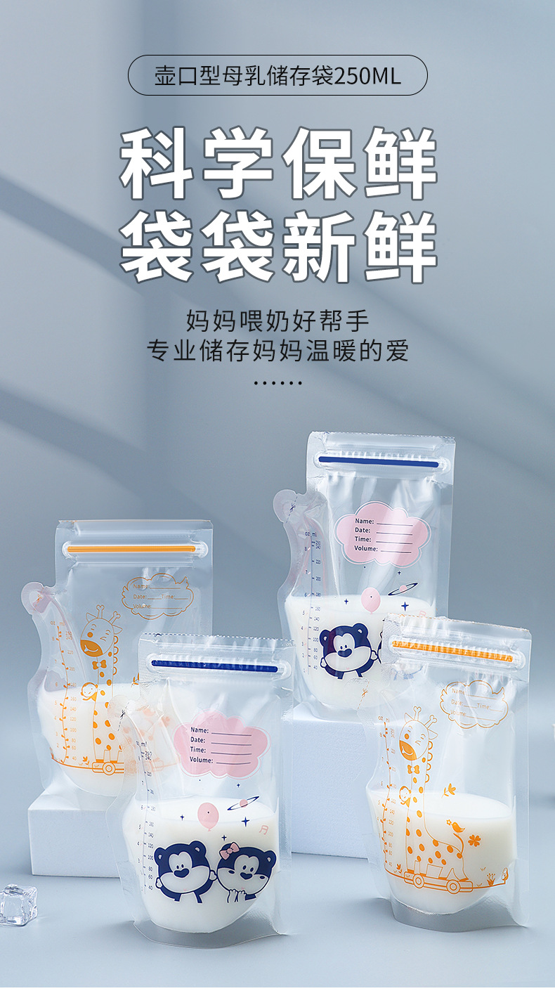 Пакеты для хранения грудного молока 250 мл, одноразовые, удобные, с носиком, для замораживания, большая емкость, английская версия