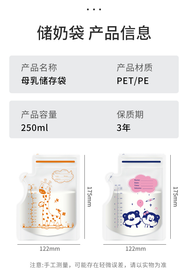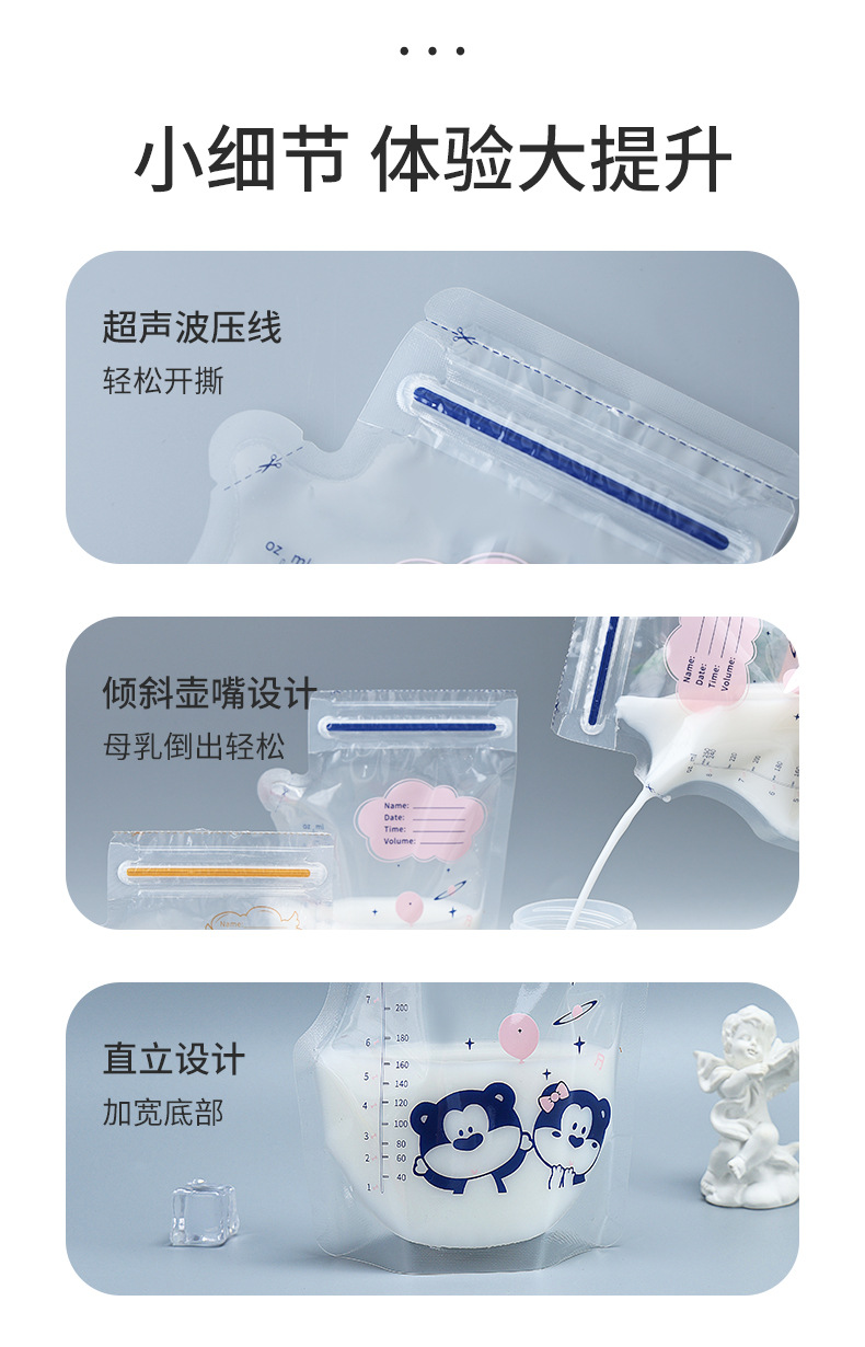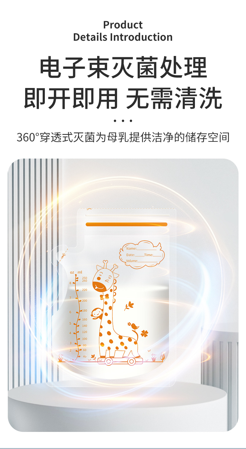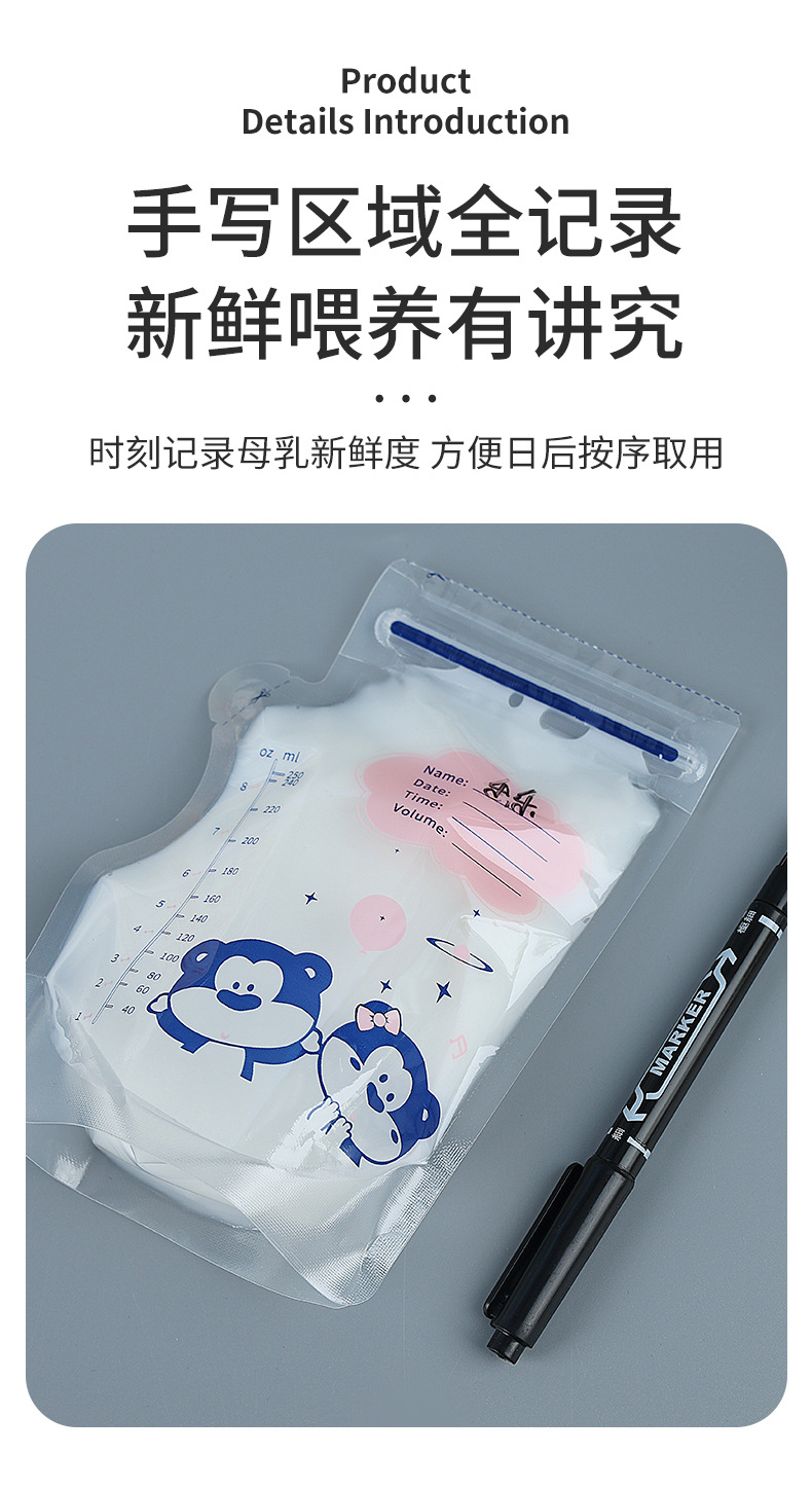 Пакеты для хранения грудного молока 250 мл, одноразовые, удобные, с носиком, для замораживания, большая емкость, английская версия