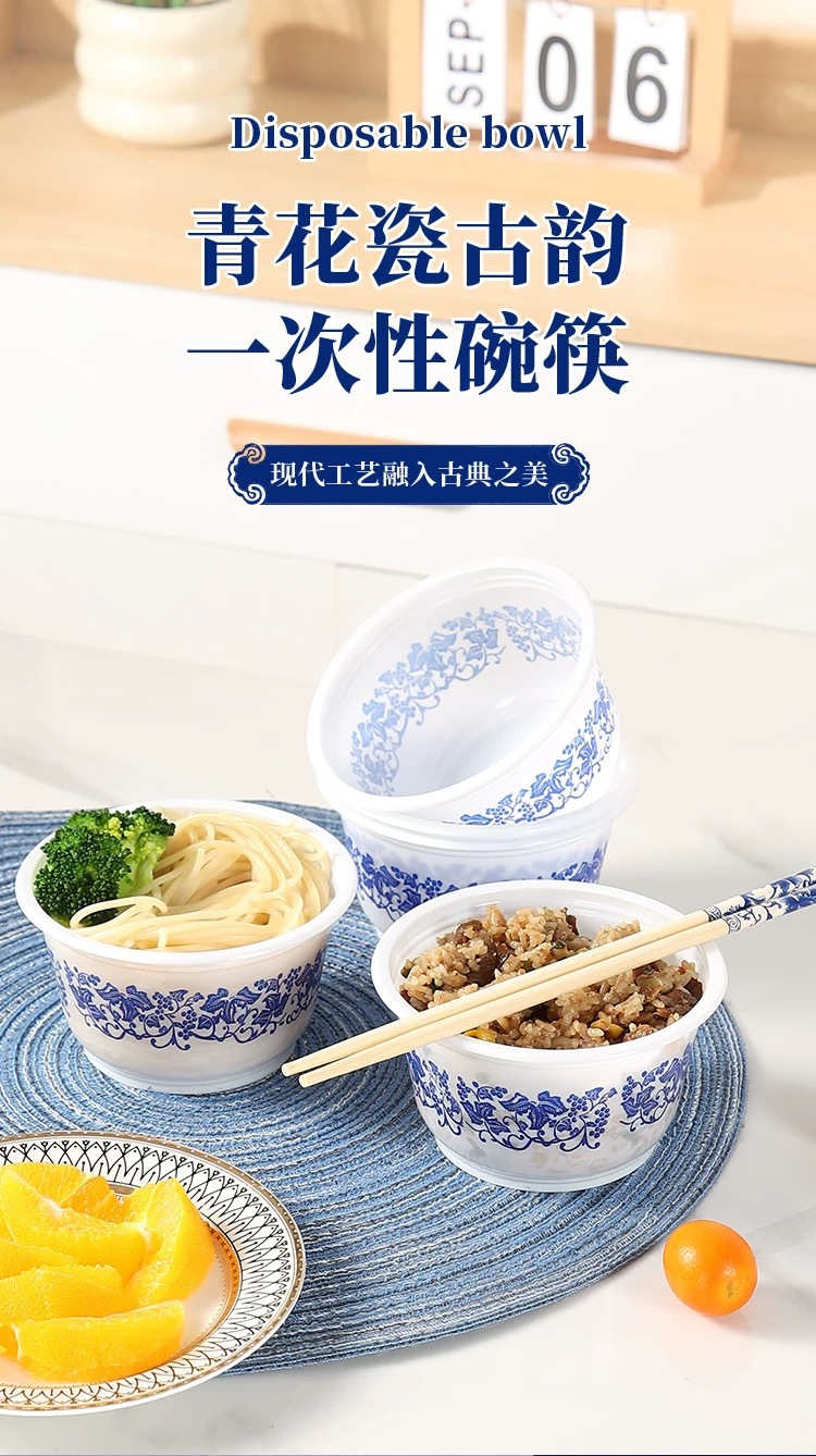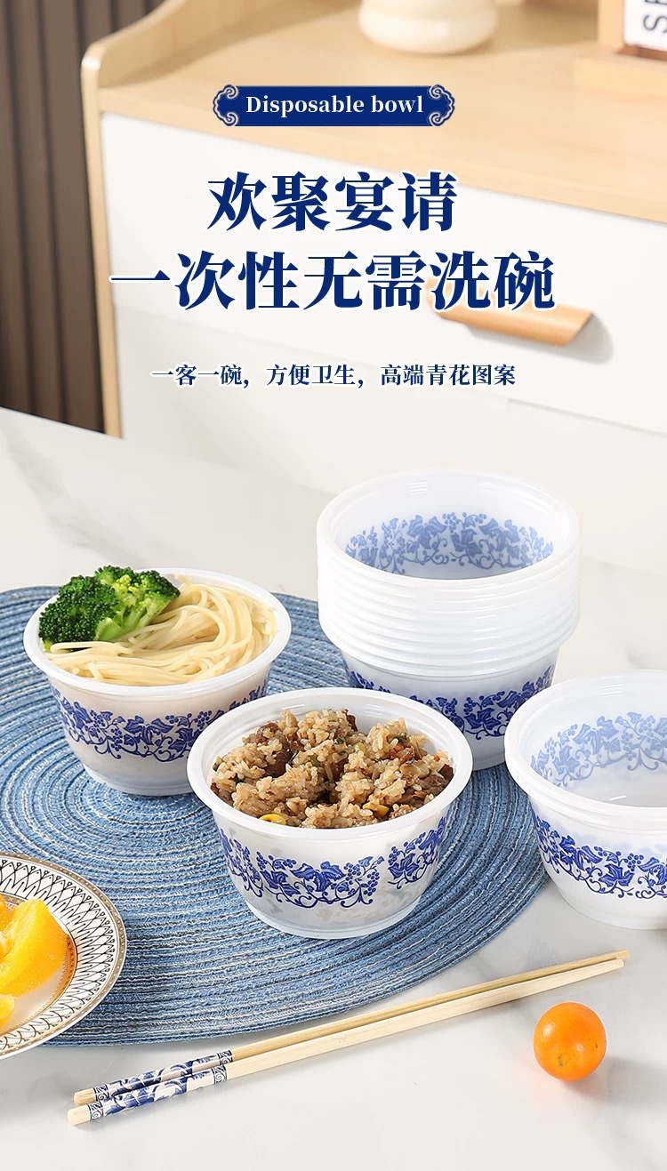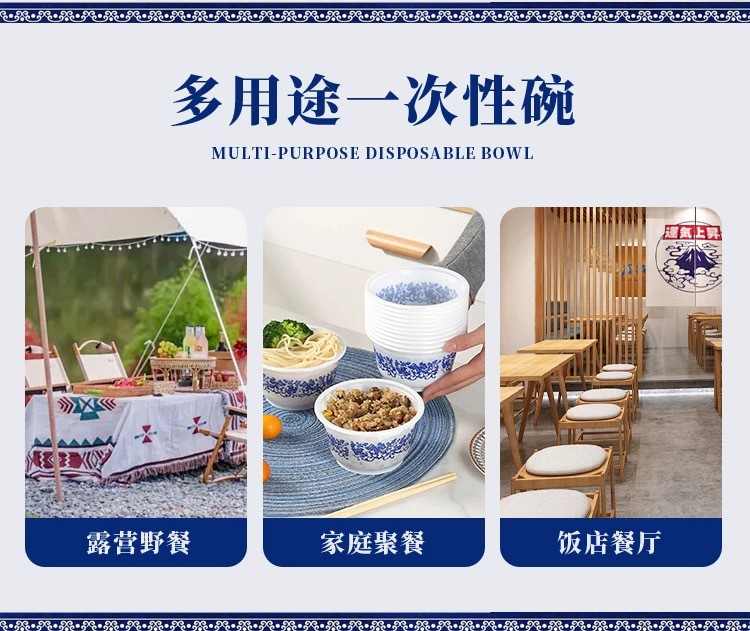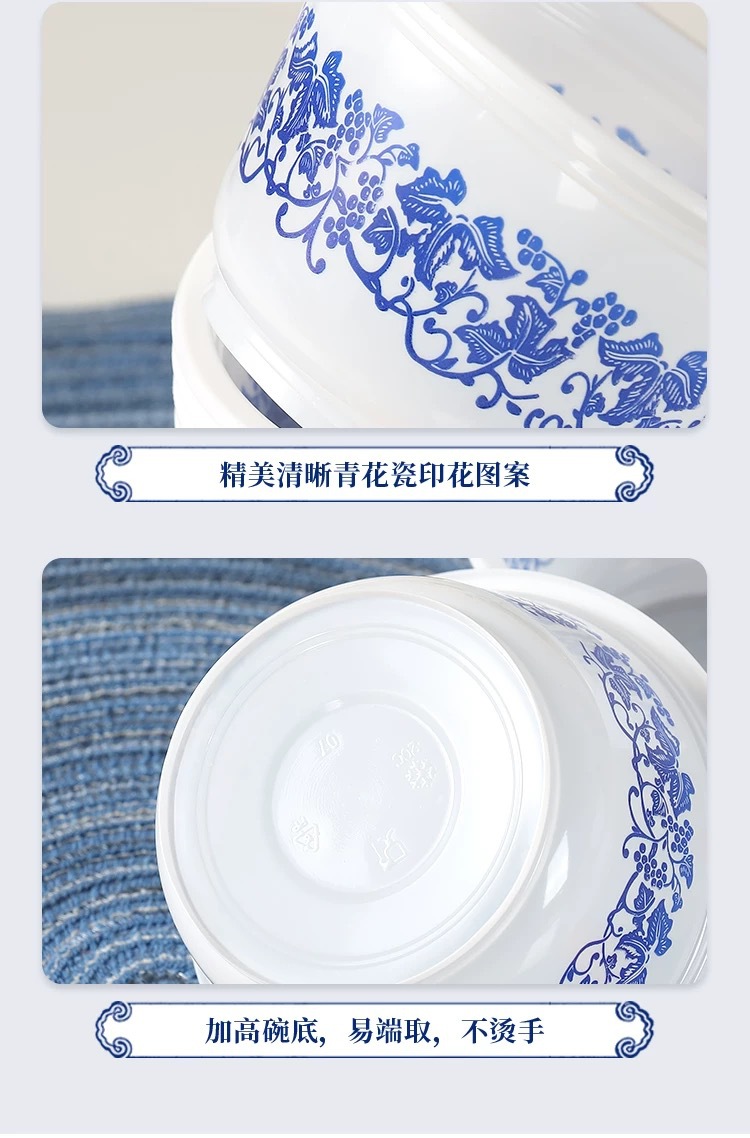 Синяя и белая фарфоровая чаша, одноразовая чаша пищевого класса, утолщенные антипригарные чаши для горячих блюд и палочки, посуда, ложки, чашки, стиль кемпинга