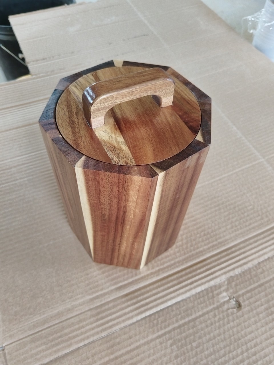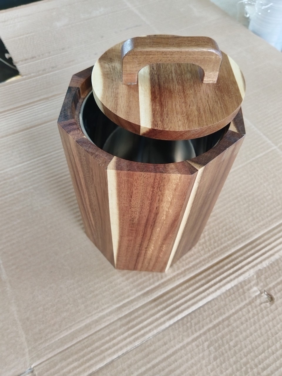 Новая коробка для хранения из акации для домашней кухни с крышкой, круглый контейнер для хранения с упаковкой из нержавеющей стали