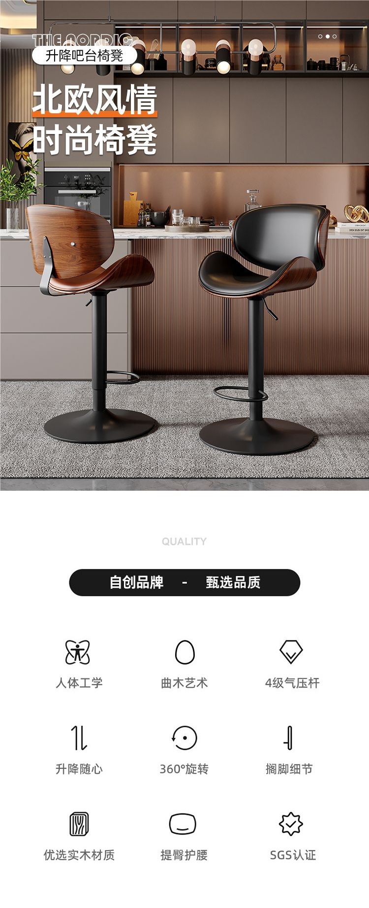 Барный стул с регулируемой высотой и вращением, современный минималистичный дизайн со спинкой, подходит для дома, стойки и бара, стильный высокий стул с завода