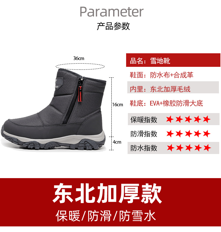 Мужские зимние хлопковые ботинки с плюшевой подкладкой, утолщенные снежные ботинки, водонепроницаемые, противоскользящие, высокие, теплые, большой размер для северо-востока