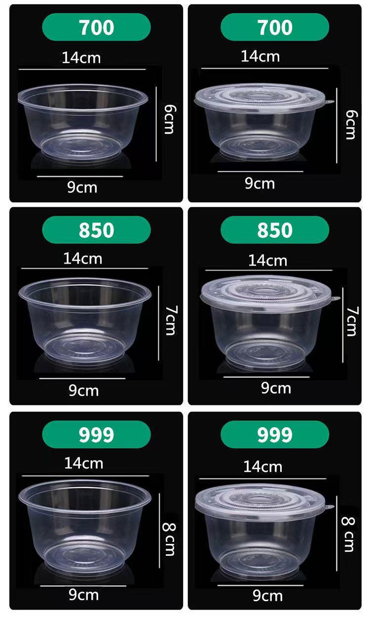Одноразовая чаша, блистерная чаша для домашнего льда с крышкой, пластиковая упаковка для обеденных коробок, круглая суповая чаша, коммерческая посуда