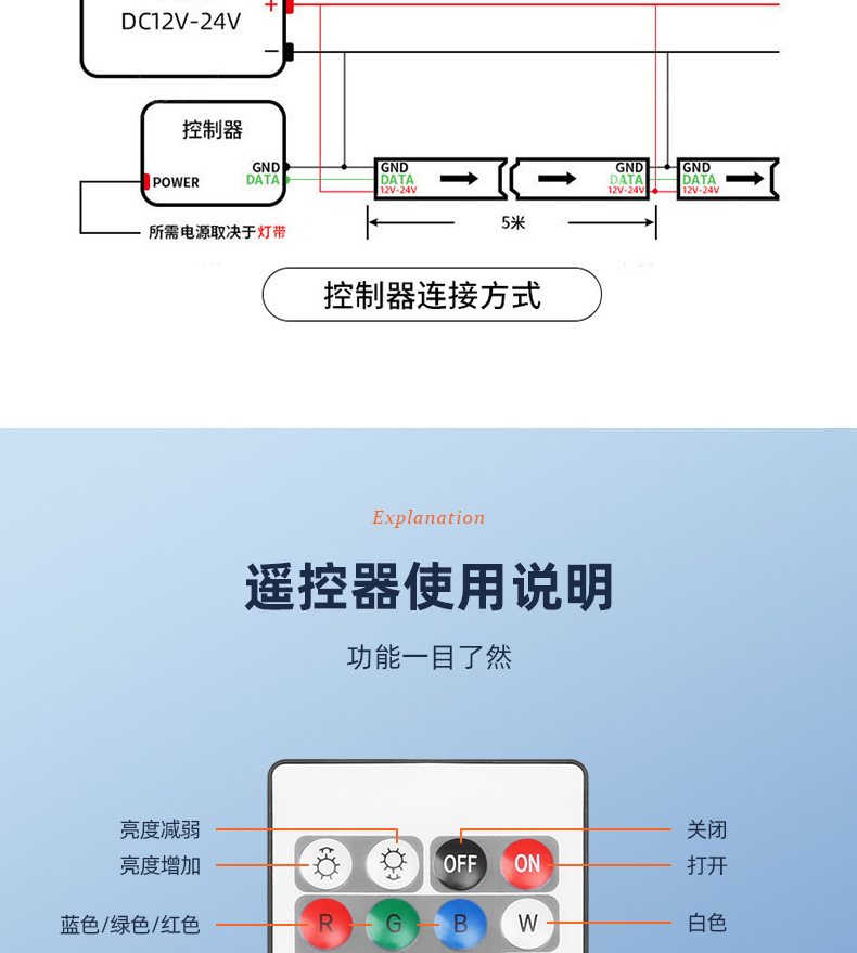 Обработка и кастомизация эксклюзивного кросс-бордного 24-клавишного RGB инфракрасного контроллера, цветной USB-кабель, 5В пульт управления ритмом музыки