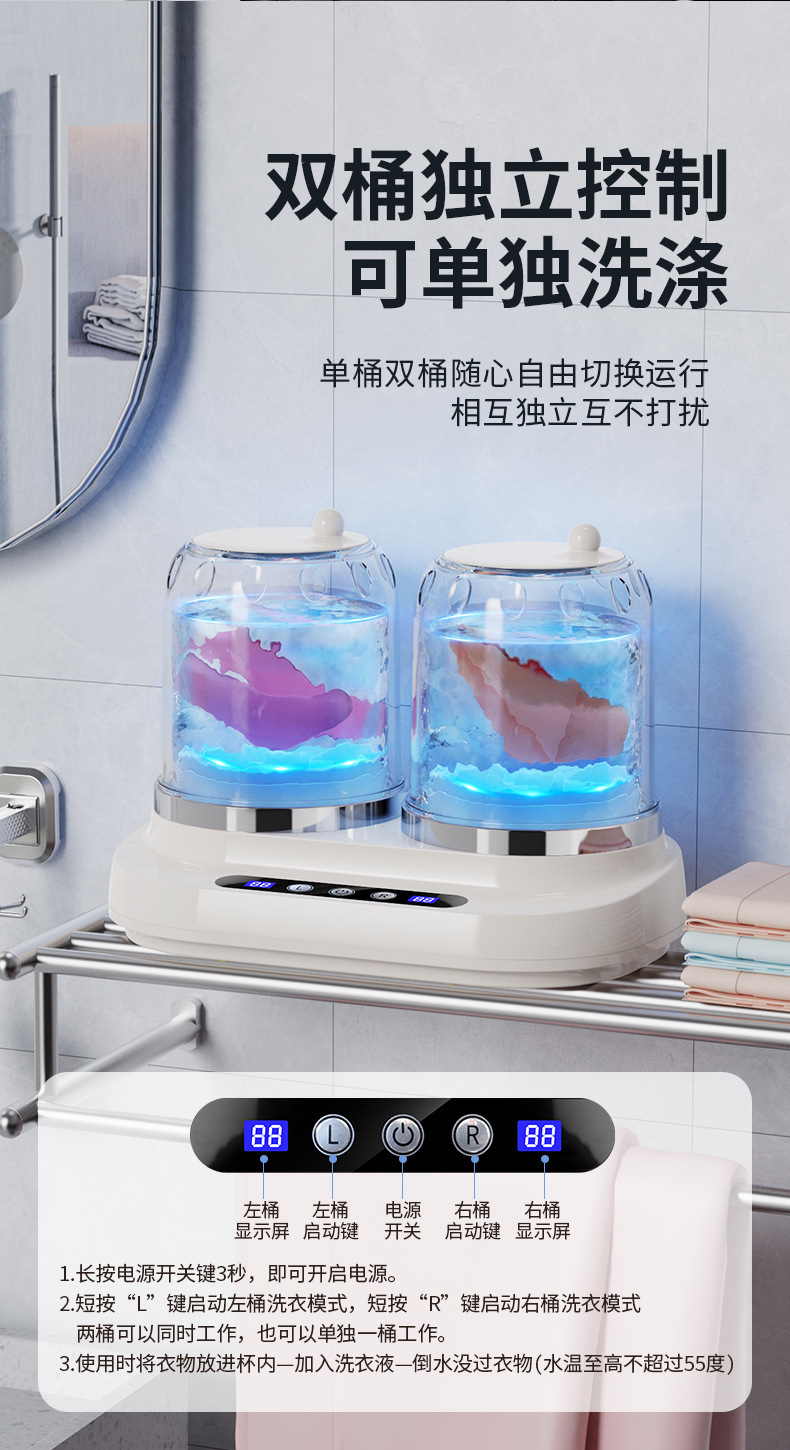 Мини стиральная машина с защитой от синего света для стирки носок, полностью автоматическая маленькая стиральная машина для детского белья, портативная двойная бочка для стирки