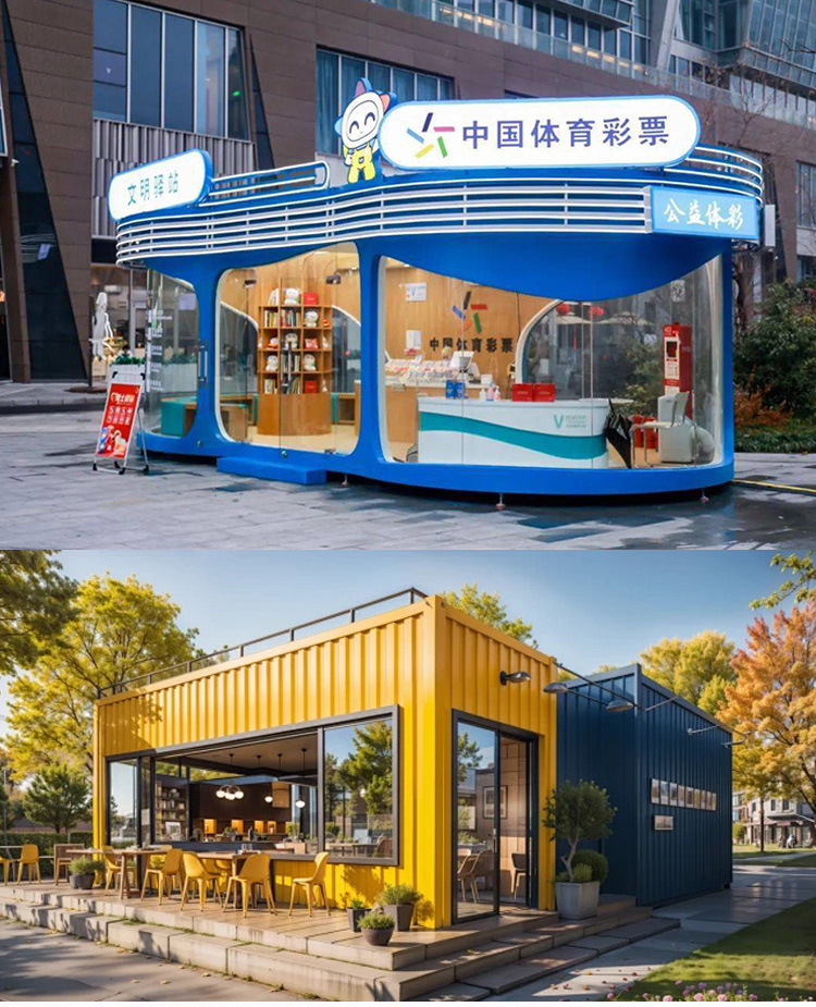 Мобильный киоск на коммерческой улице, билетный киоск в живописном месте, стильный киоск для кофе и молочного чая, контейнер