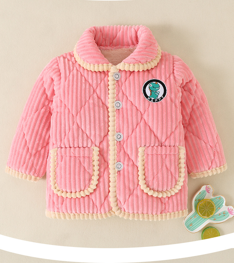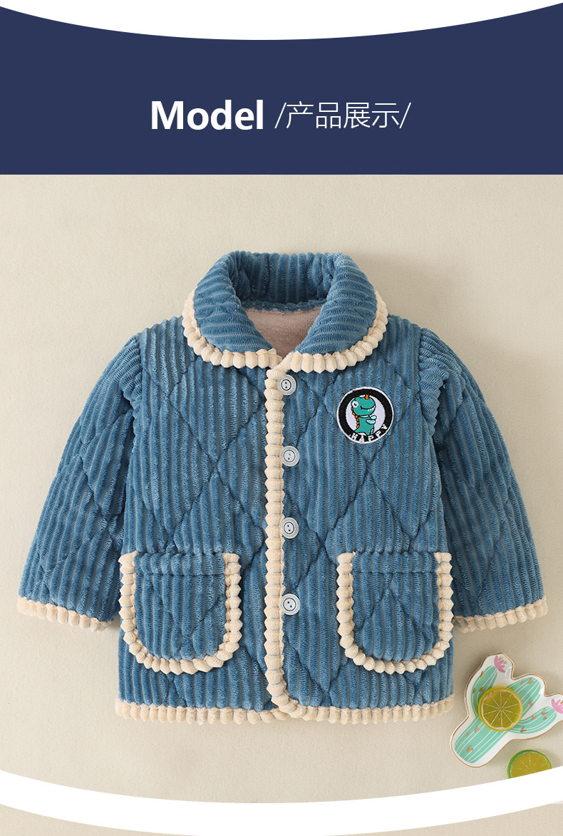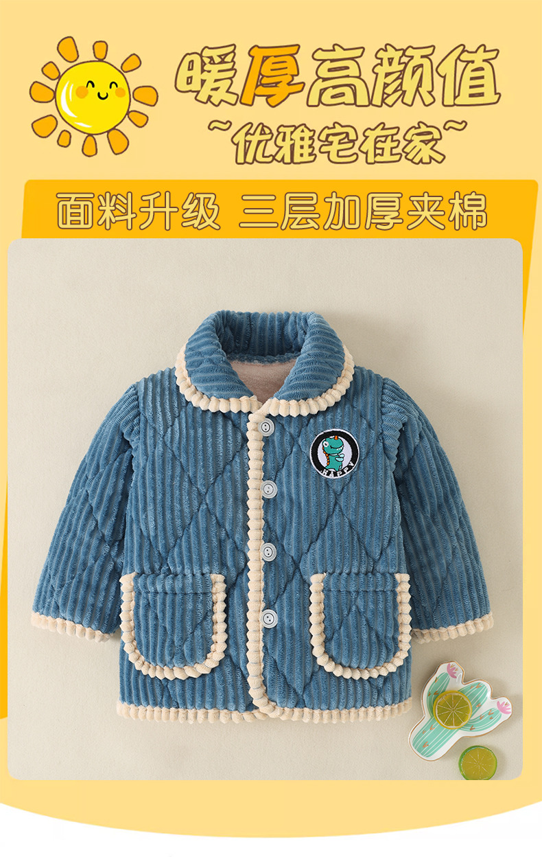 Цельный верх для осени и зимы детские пижамы фланель три слоя стеганые утолщенные зимние домашние вещи для мальчиков и девочек