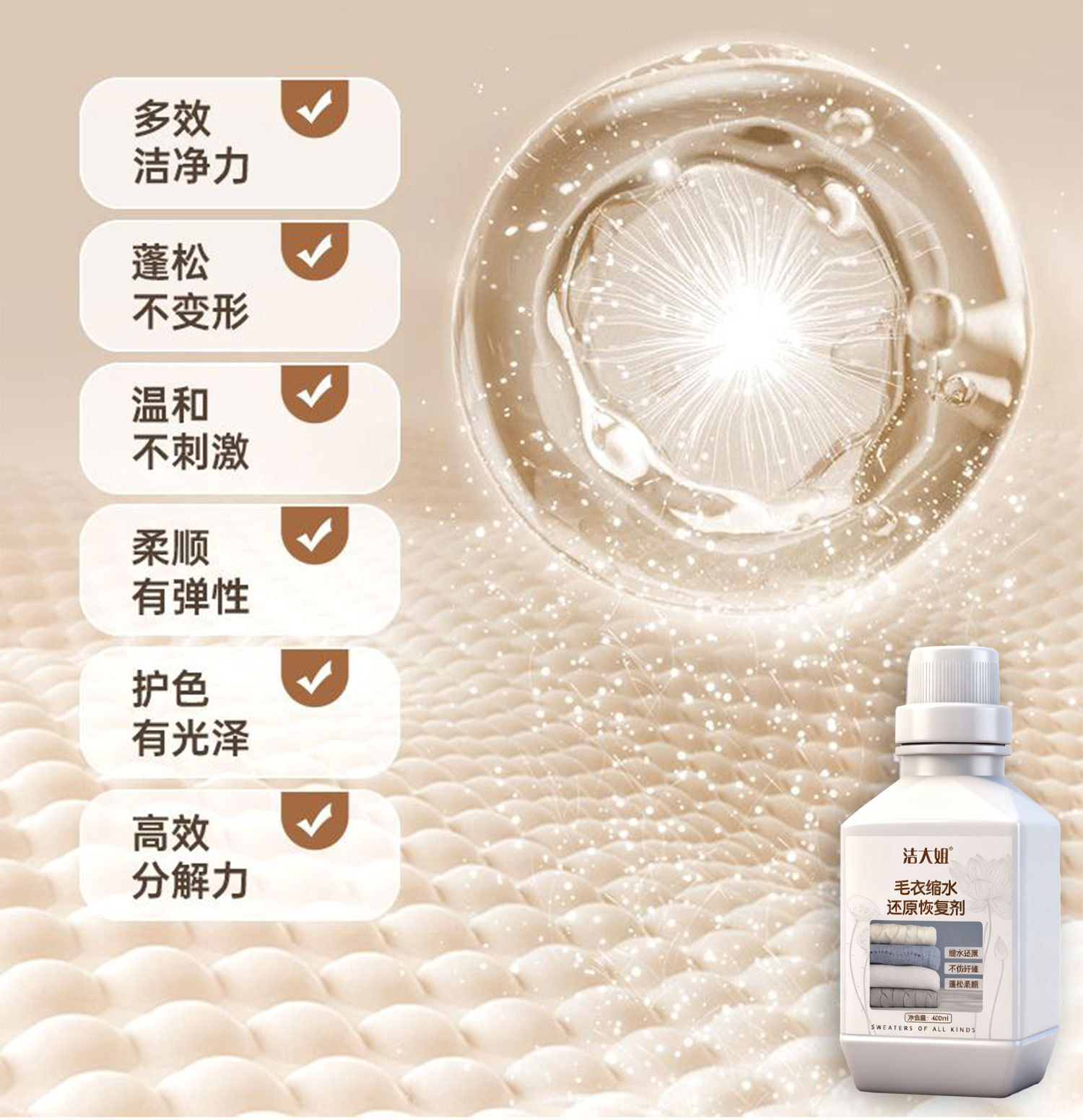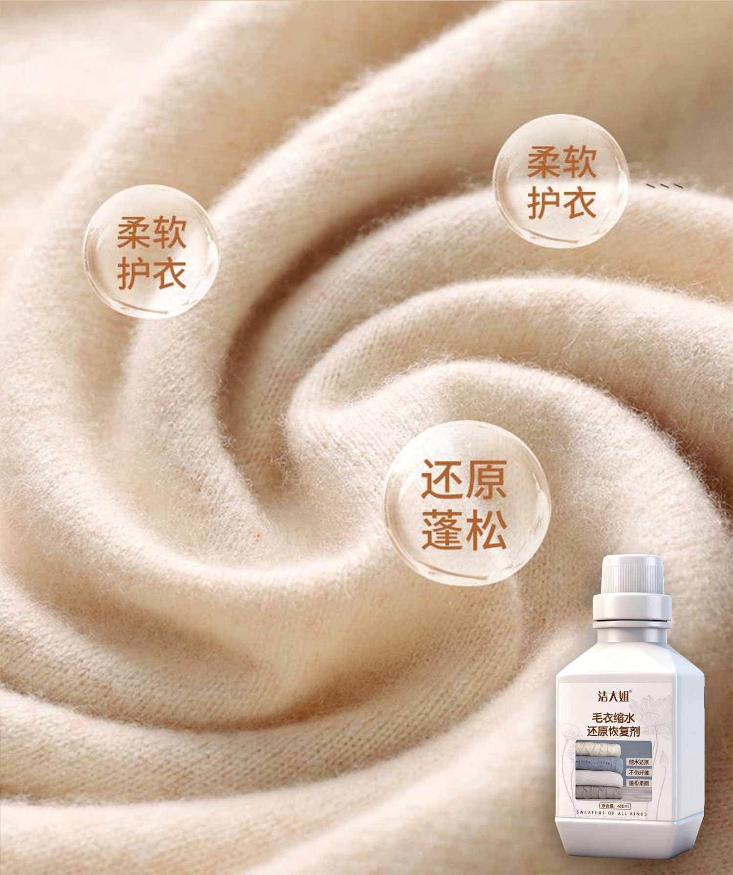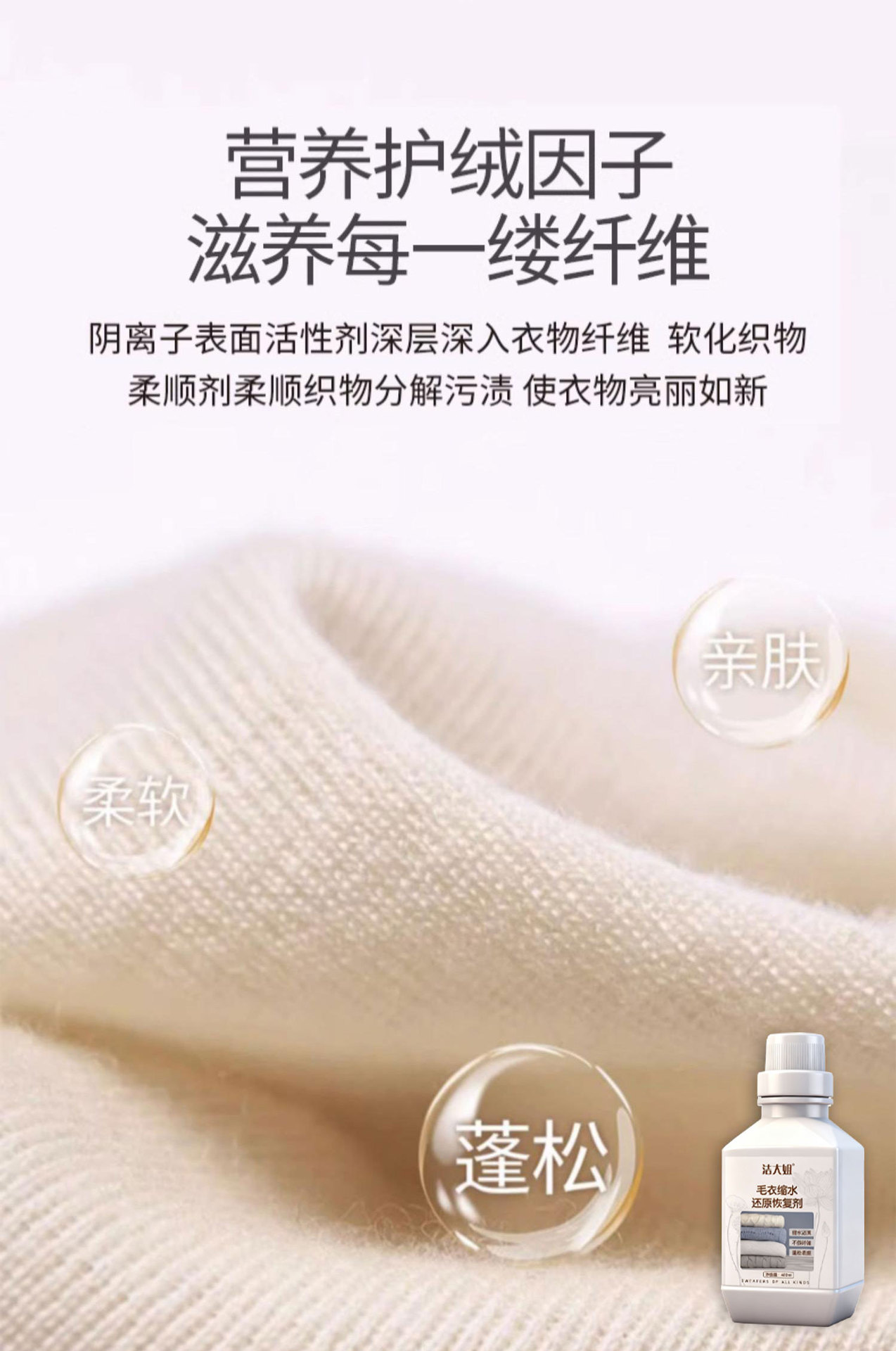 Средство для уменьшения усадки шерстяных свитеров, восстановление, увеличение кашемира, уход за мягкой шерстью
