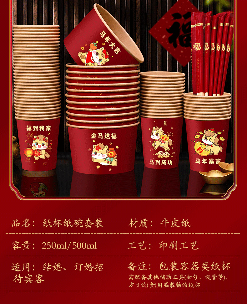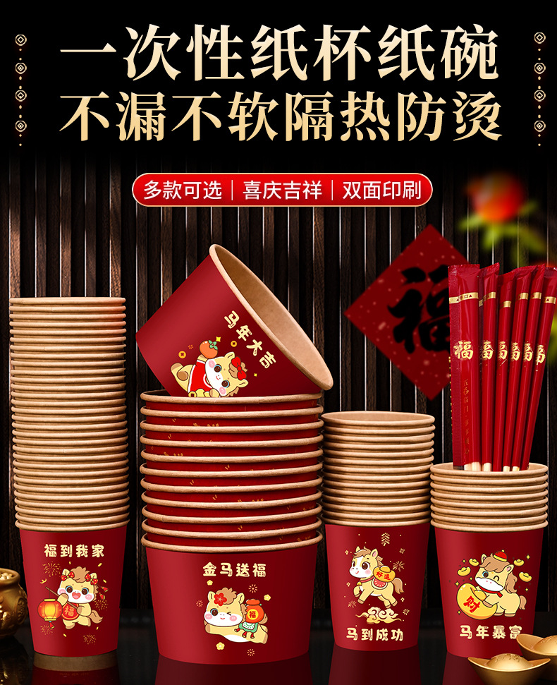 Крафт-бумажная чаша на Новый год лошади, утолщенная одноразовая чаша, принадлежности для новогоднего праздника