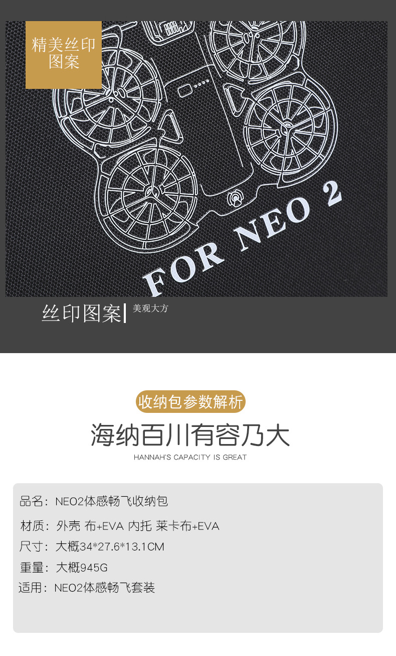 适用于:NEO2 体感畅飞套装收纳包(放不了RCN3遥控器)