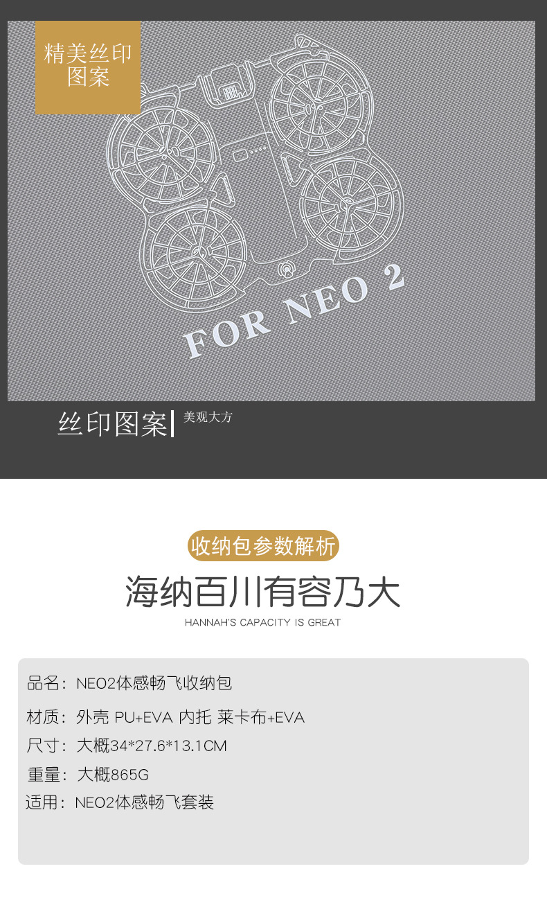 适用于:NEO2 体感畅飞套装收纳包(放不了RCN3遥控器)
