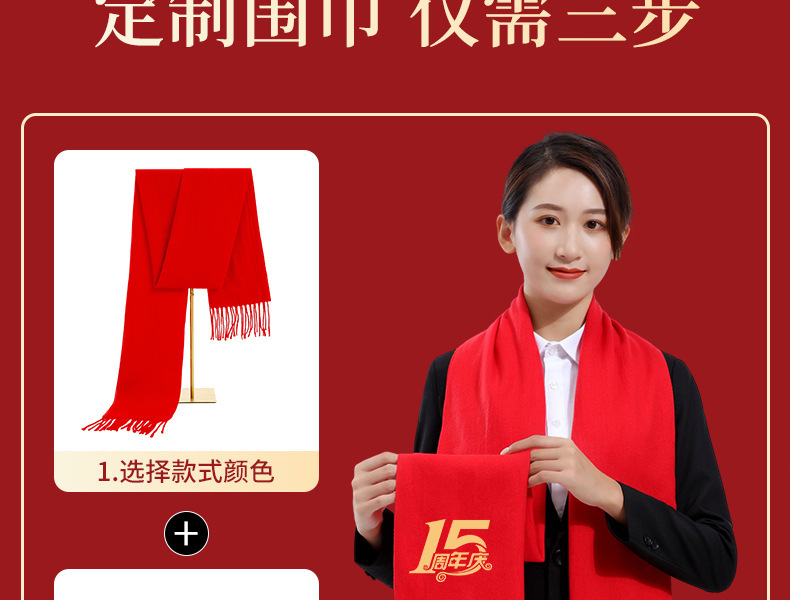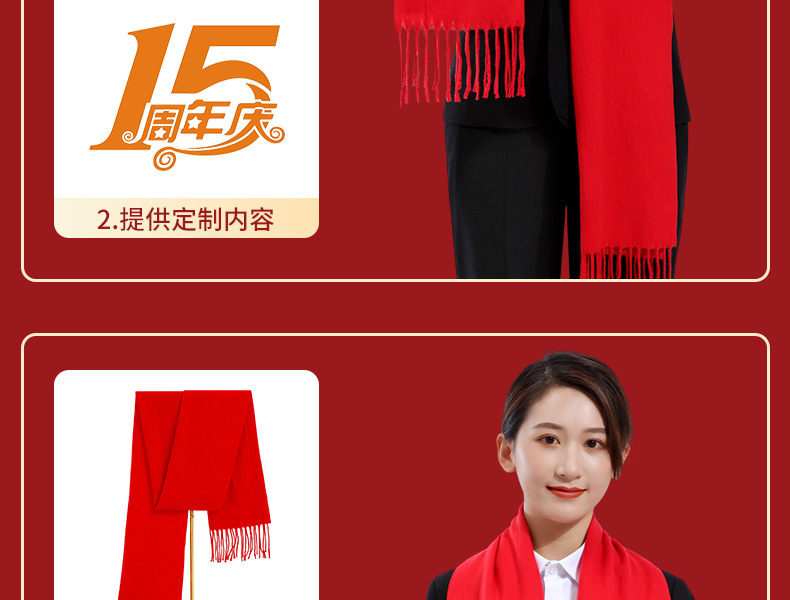 Красный шарф с индивидуальной печатью логотипа и вышивкой, китайский красный шарф, большой красный для ежегодной встречи