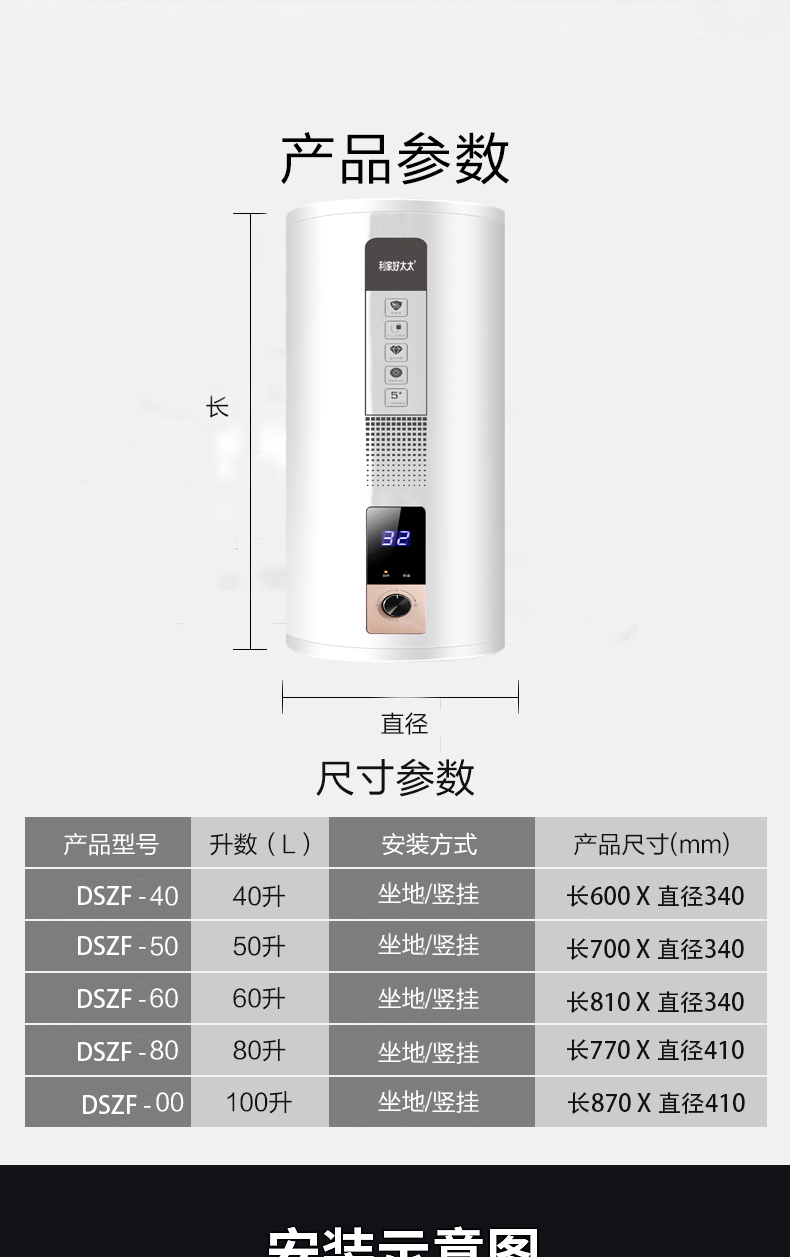 ![]() | 60l [vertical wall-mounted/water outlet downward] double anti-electricity wall door-to-door installation 3000w ratio | ¥735.0 / ≈ 8 948 ₽ | 40 | 5975101768840 | |