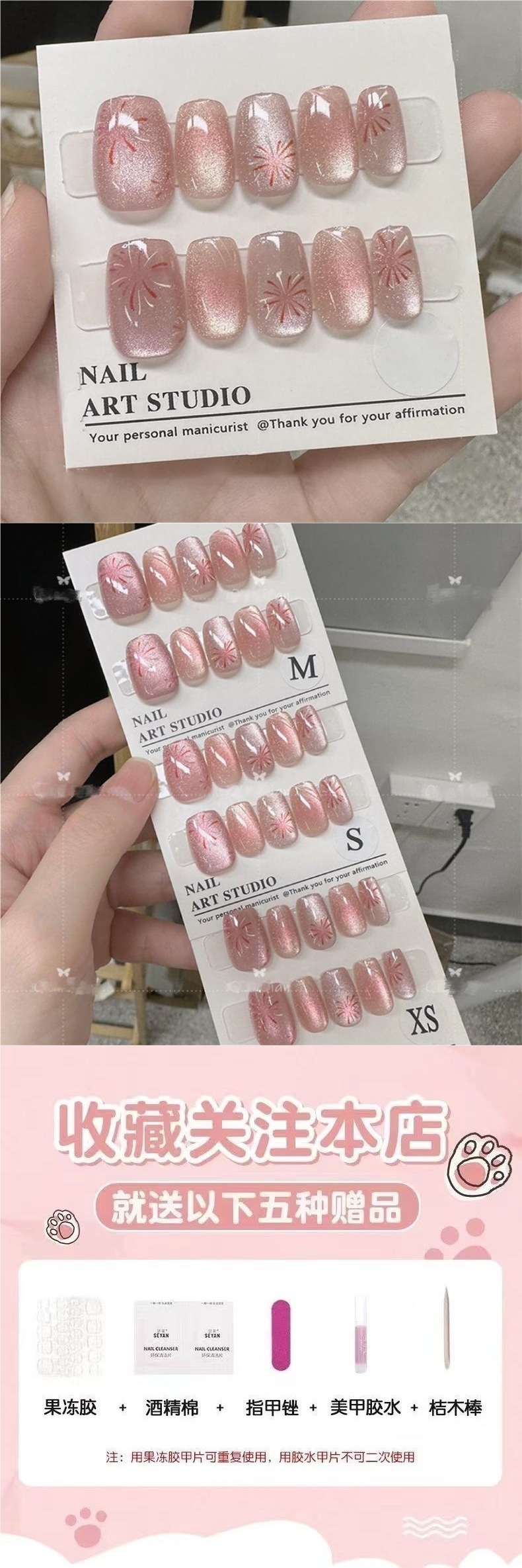 (Короткий стиль) Наклейки для ногтей с эффектом кошачьего глаза, фейерверки, светящиеся наклейки для ногтей, нишевое мягкое искусство ногтей