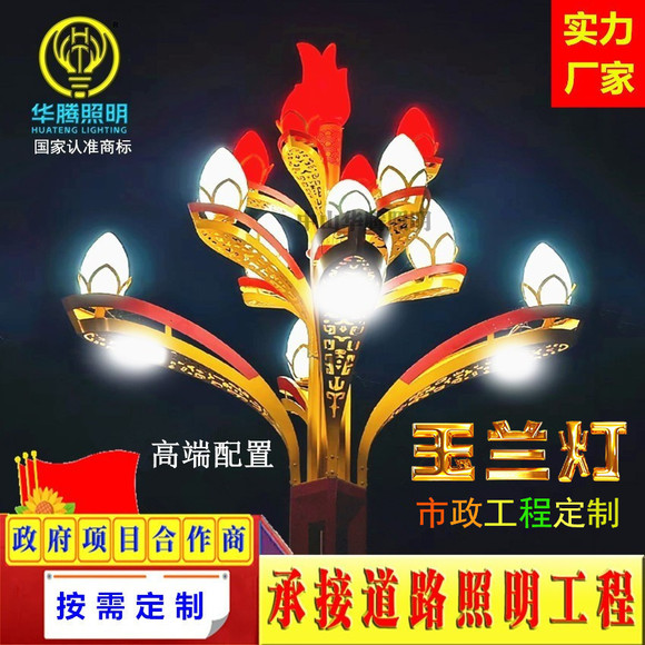Настенный фонарь с цветами Шань Дандан, китайский фонарь, квадратный фонарь магнолии, высота столба 8.1 м