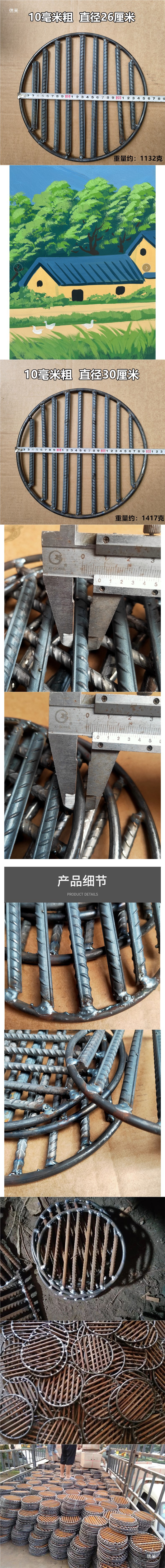 Решетка, сваренная из стальных прутьев, круглая, 8 мм, утолщенная, для дренажа, искусственно сваренная из стальных прутьев