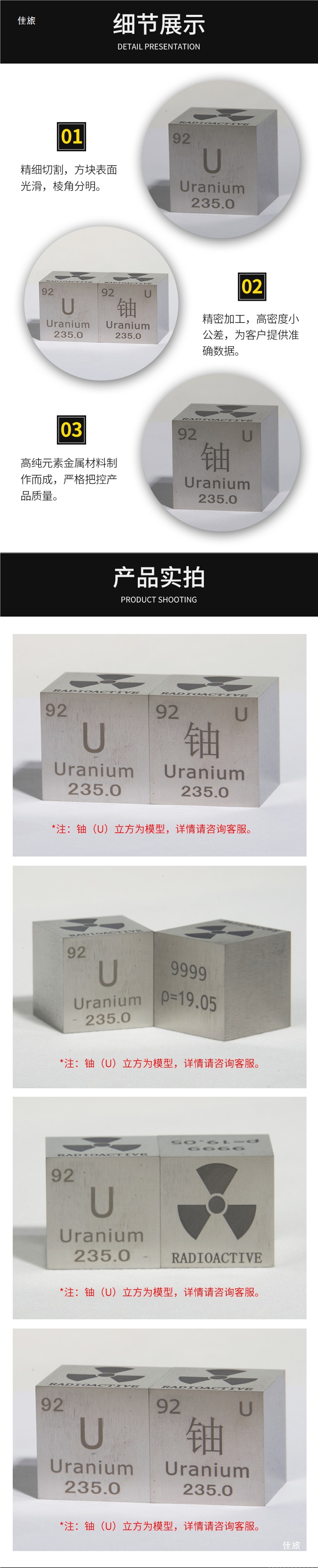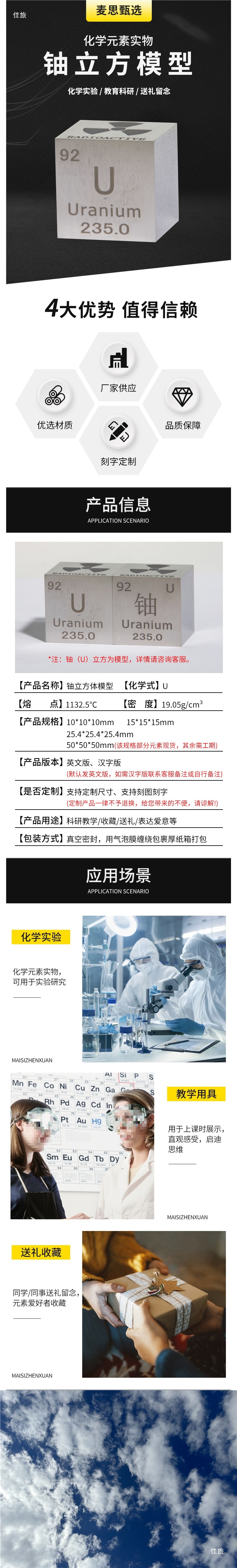 Модель куба урана 10mm 15mm 25.4mm 50mm периодическая таблица элементов физические кубы урана