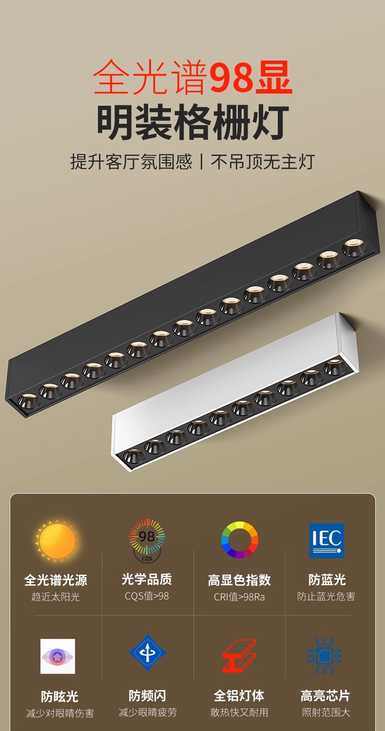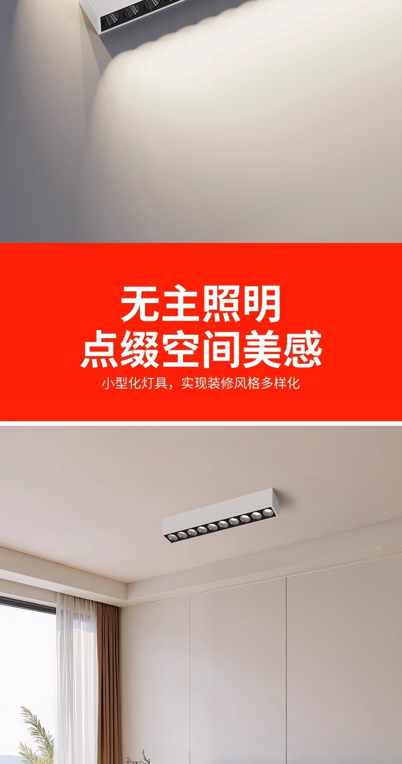 Светодиодный накладной светильник, без необходимости в открытии, антивспышечный линейный свет, освещение для потолка в гостиной без основного света
