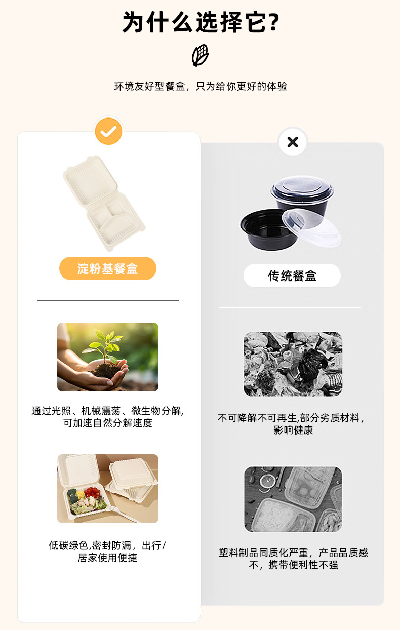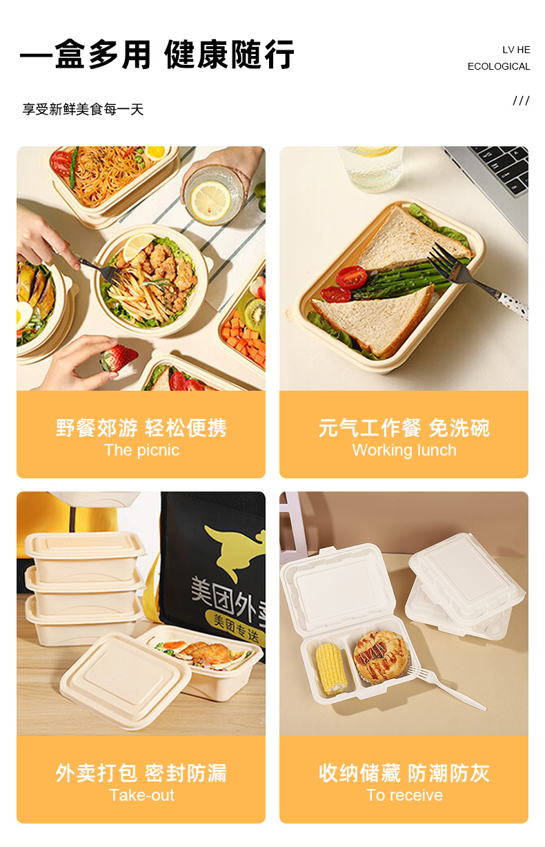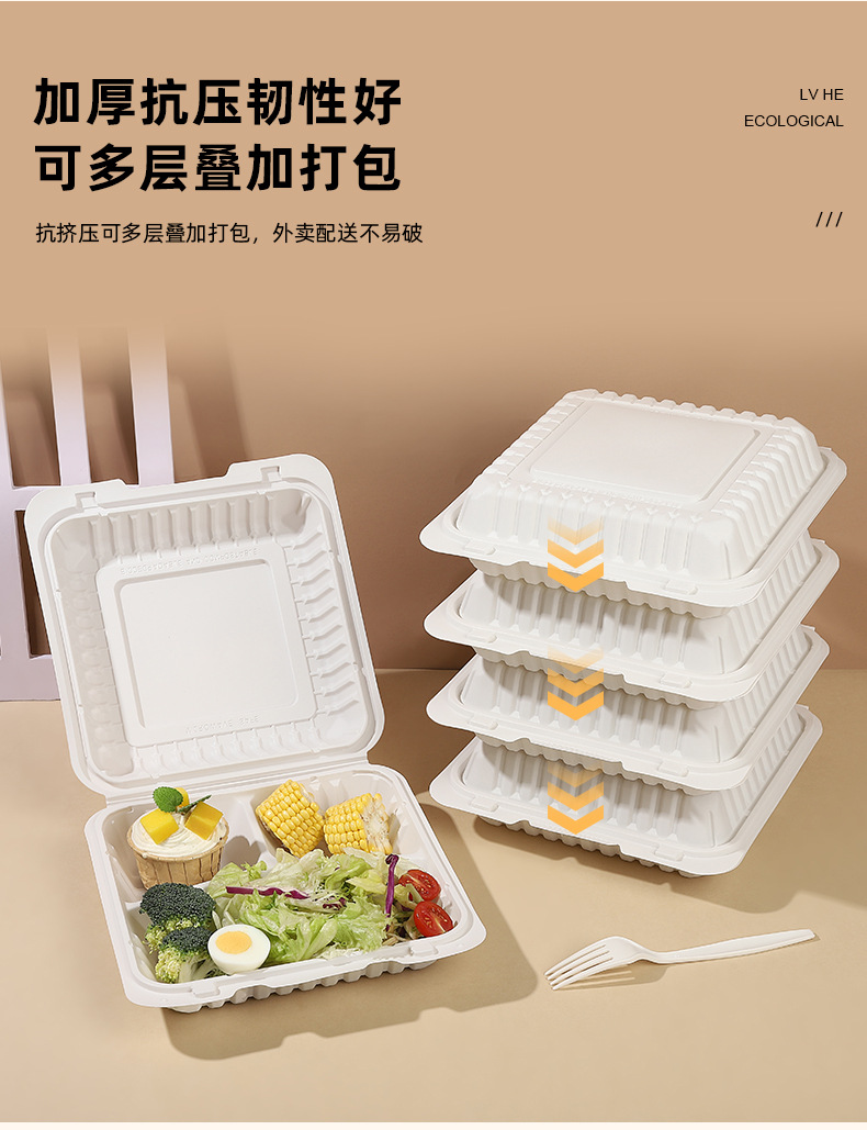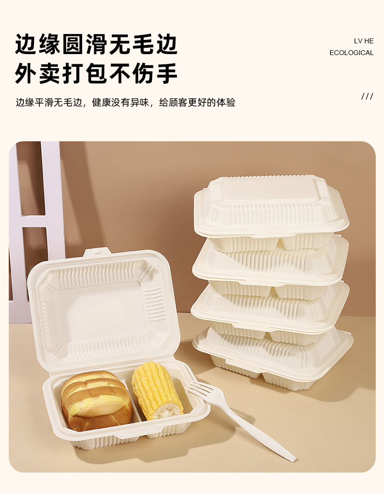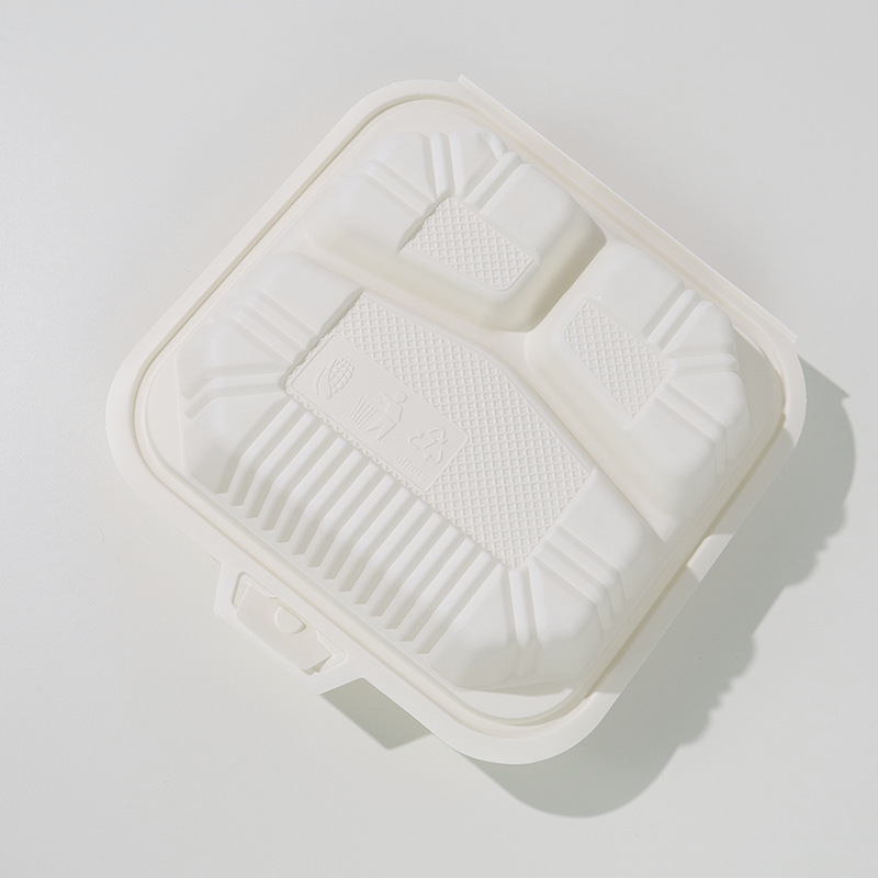 Биодеградируемая одноразовая коробка для обеда из кукурузного крахмала, нетоксичная, экологически чистая, устойчивая к высоким температурам, пригодная для микроволновки, коробка на вынос 9×6 дюймов