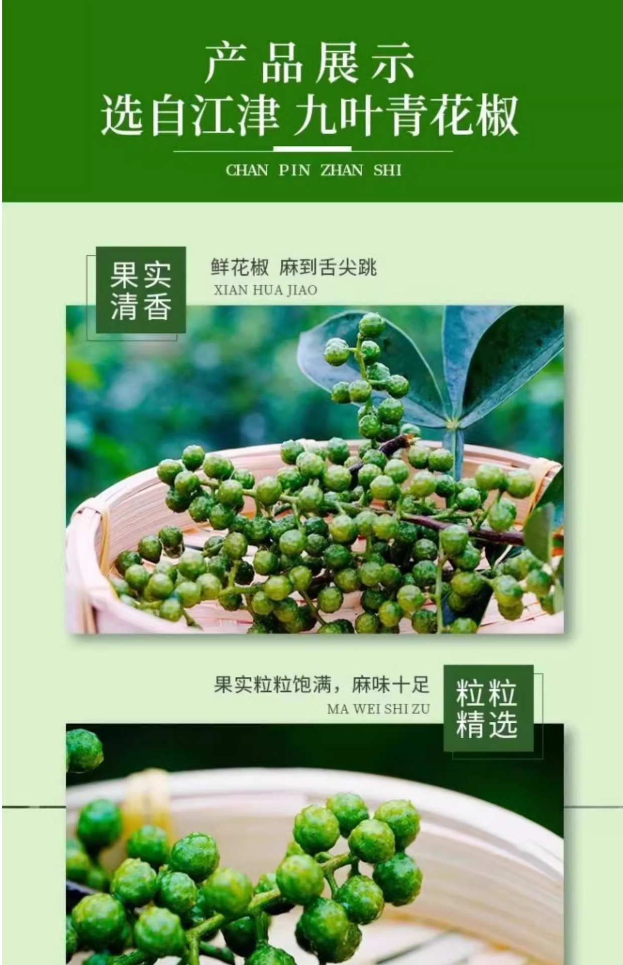 Свежий зелёный сычуаньский перец 100 г, свежий винный перец из Чунцина, замороженные перцы