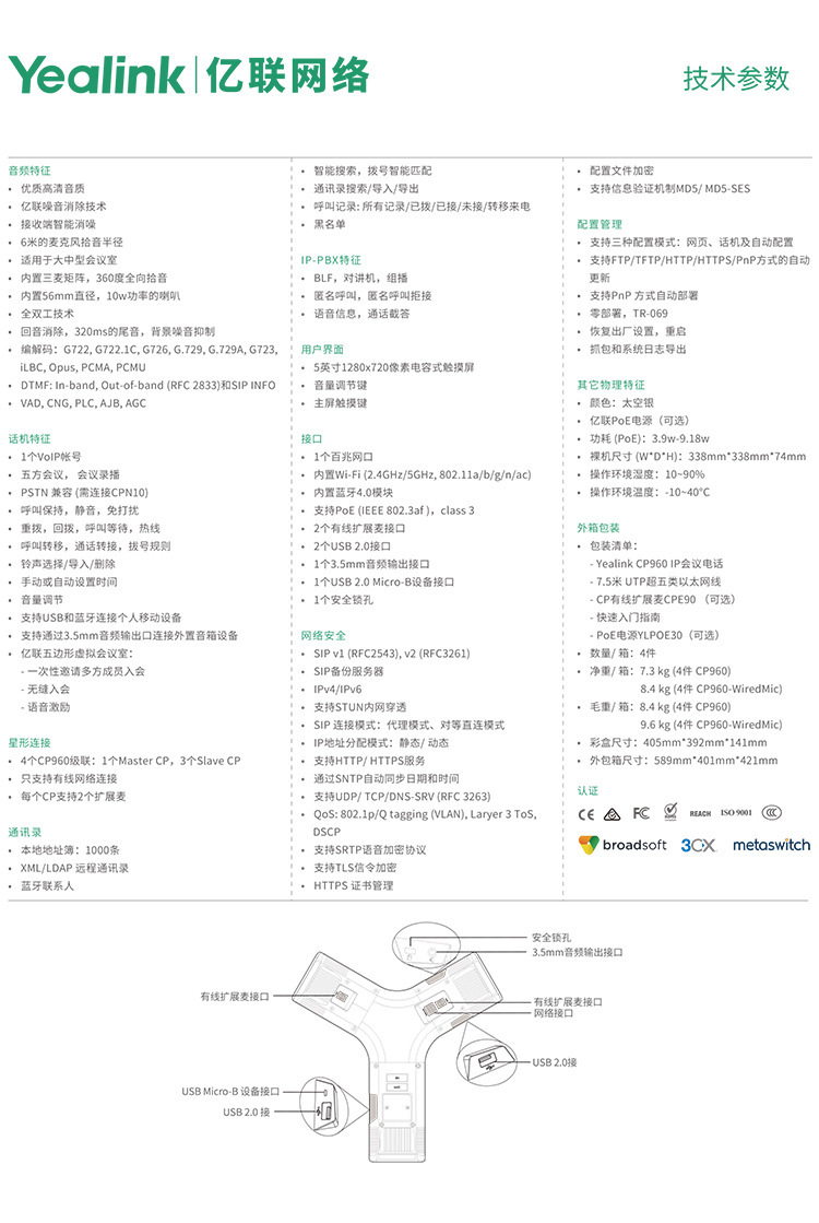 Yealink CP960, аудио- и видеоконференц-система, цветной сенсорный телефон (подходит для малых и средних компаний