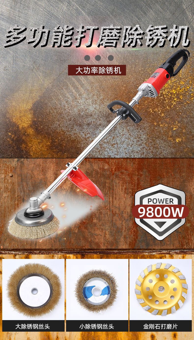 Электрический удалитель ржавчины для железа и стали, высокомощный шлифовальный станок для цветных стальных плит, проволочная щетка для полировки стальных плит I-образного профиля и цементных полов