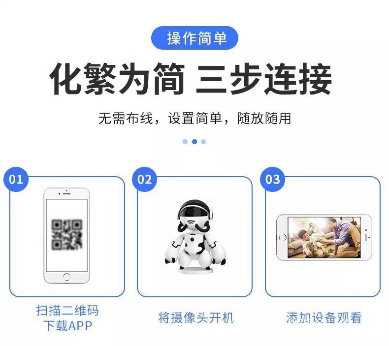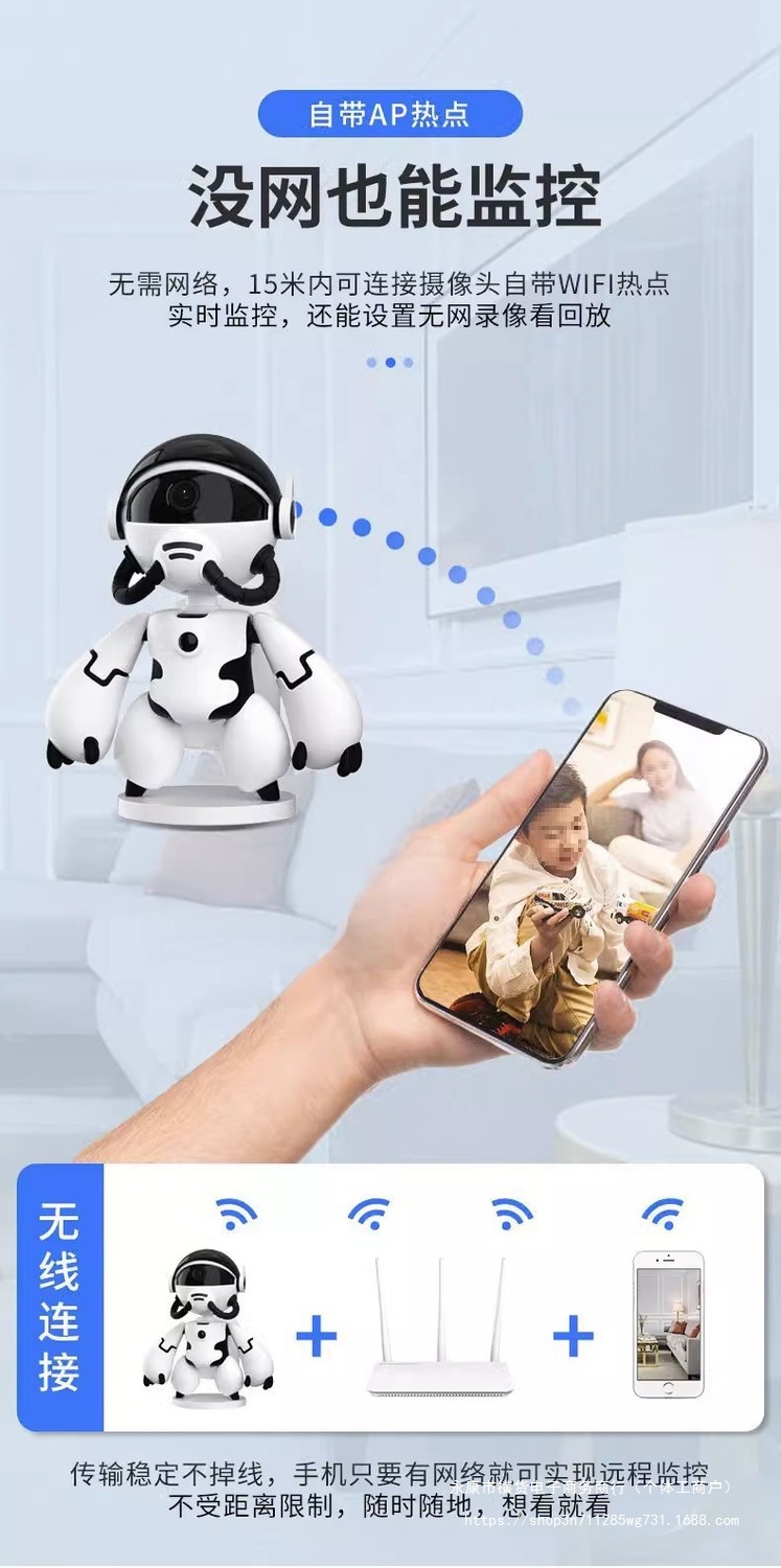 Беспроводная камера умного дома с удалённым доступом через мобильный телефон, 360 градусов без мёртвых зон для внутренней фотографии
