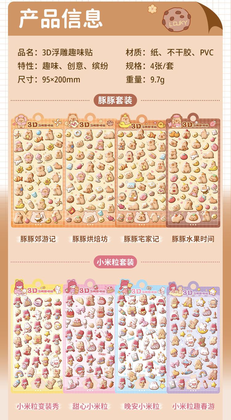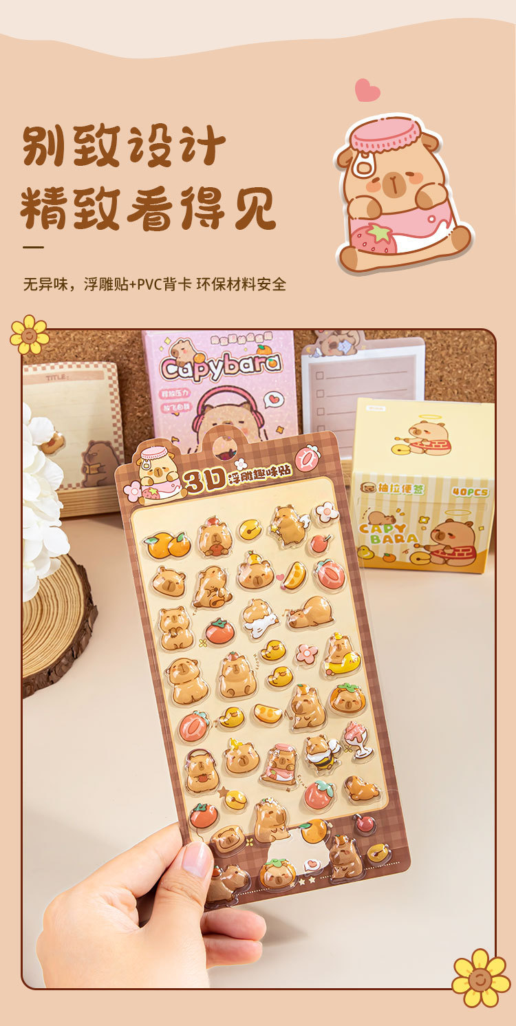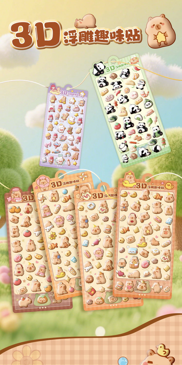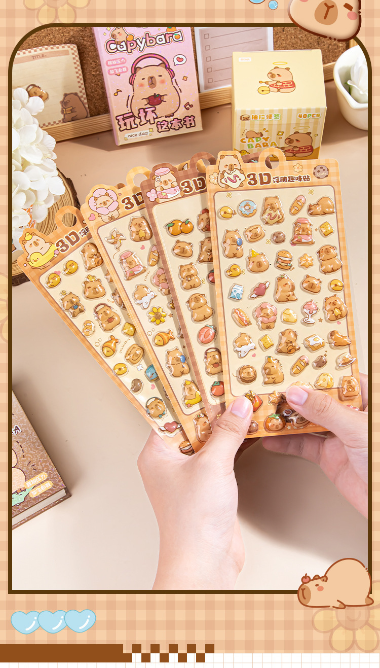 Kapibala 3D стерео рельефные наклейки мультяшные без следов многоразовые наклейки для планировщика студентов DIY украшение канцелярские товары