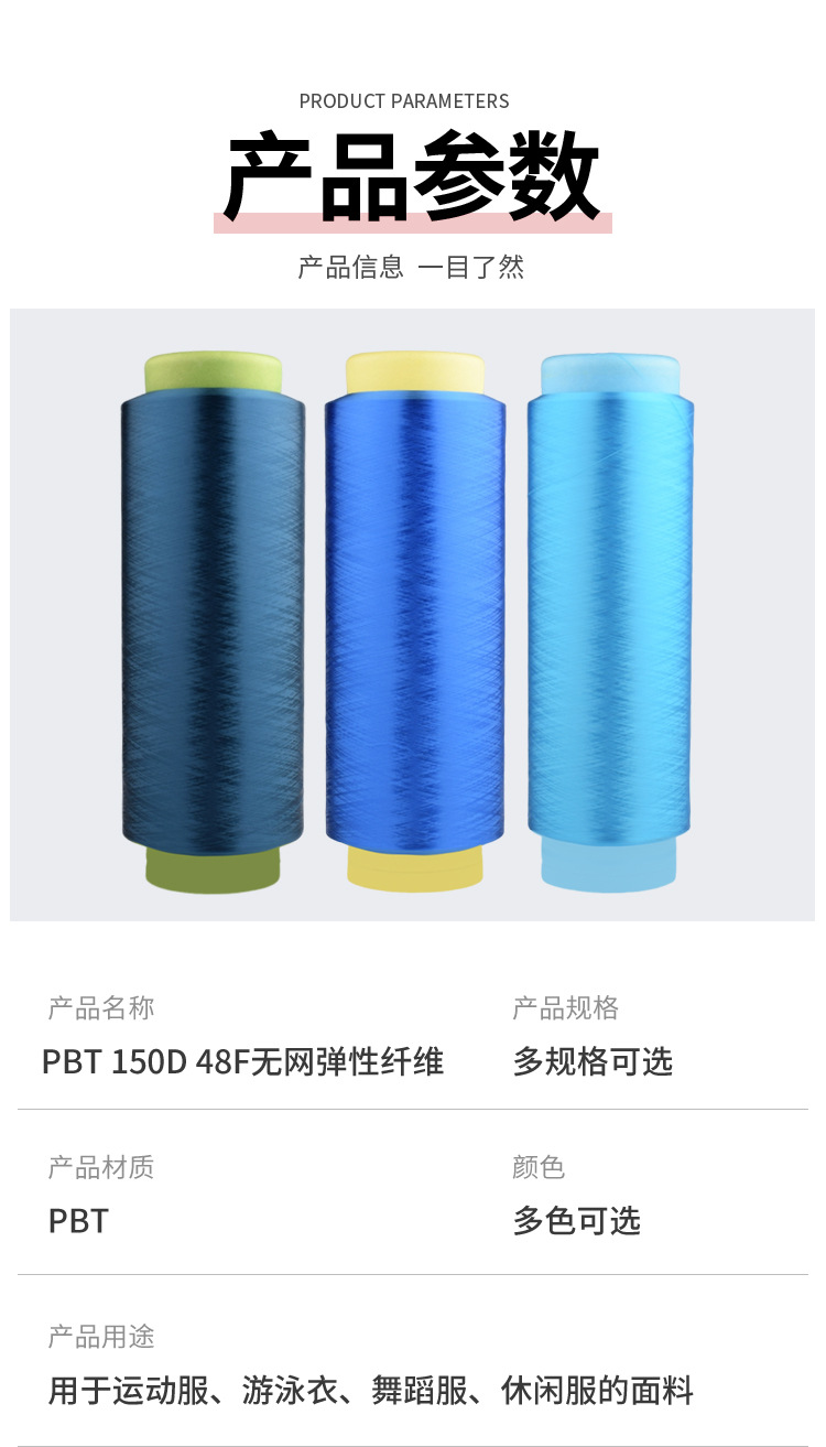 150D 48Fpbt высокоэластичное волокно, высокая эластичность, высокая прочность, хорошая стойкость к образованию катышков, высокая светостойкость, поддержка кастомизации