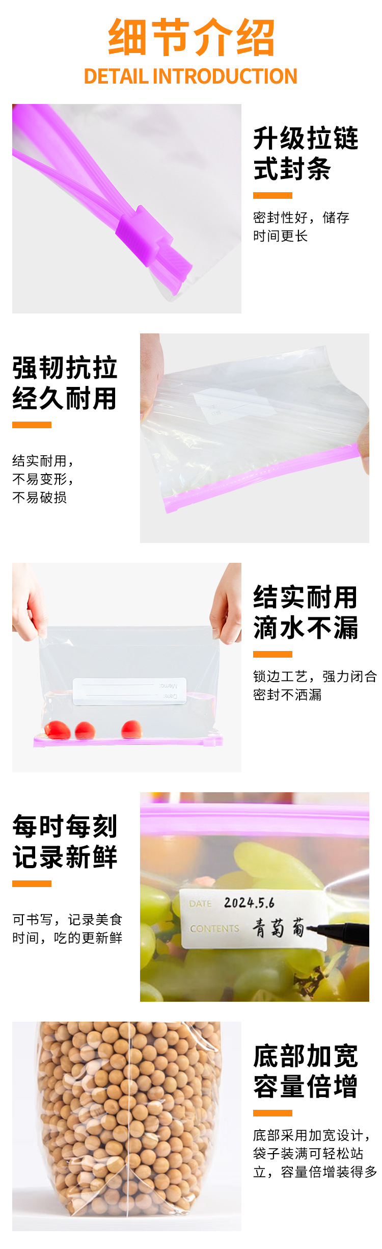 Пакет для сохранения продуктов Pe, прозрачный с застежкой, для упаковки замороженных продуктов в холодильнике, пишущийся пакет для еды