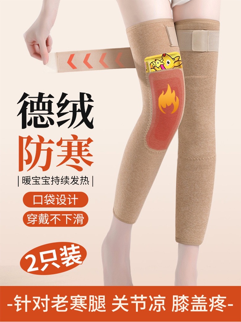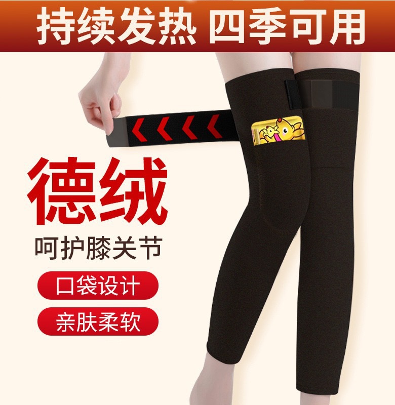 Удлиненные леггинсы с карманами De Rong, наколенники для осени и зимы, защита от холода и тепло, бесшовные с карманами для грелок, гетры, наколенники