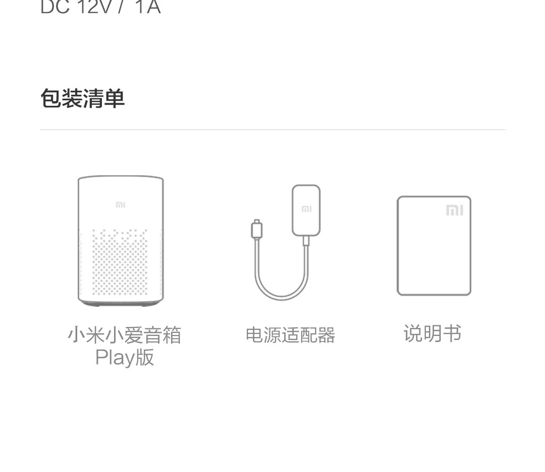 Список упаковки Xiao mi xiaoai speaker play version, power adapter, manual