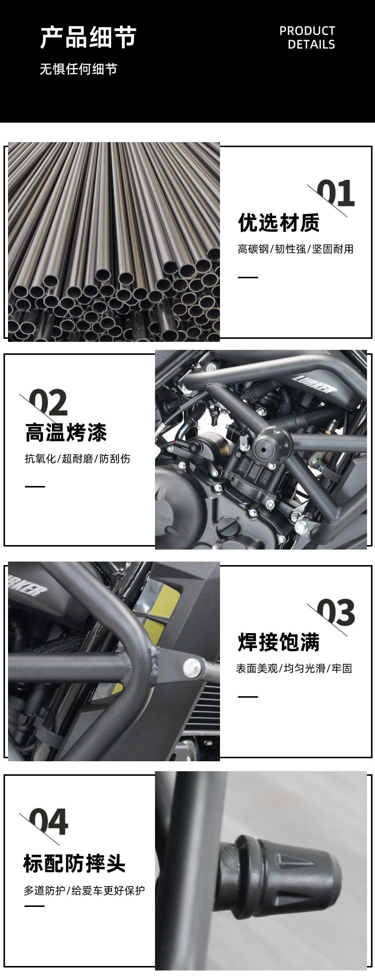 Подходит для краш-бара Qidian Kd150C, антивибрационная планка, бампер, углеродная сталь, усиленный конусный резиновый наконечник