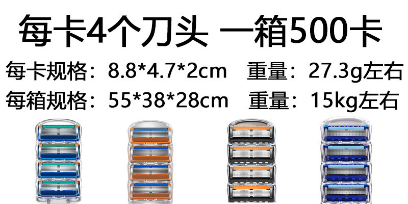![]() | Five-layer orange and black blades, 4 pieces + plastic shaking head knife holder + shaving cream + storage box | Default item | ¥7.08 / ≈ 85 ₽ | 895098 | 6145588159711 | |
