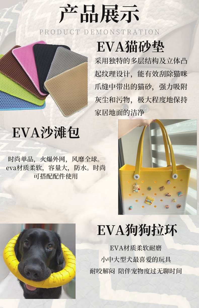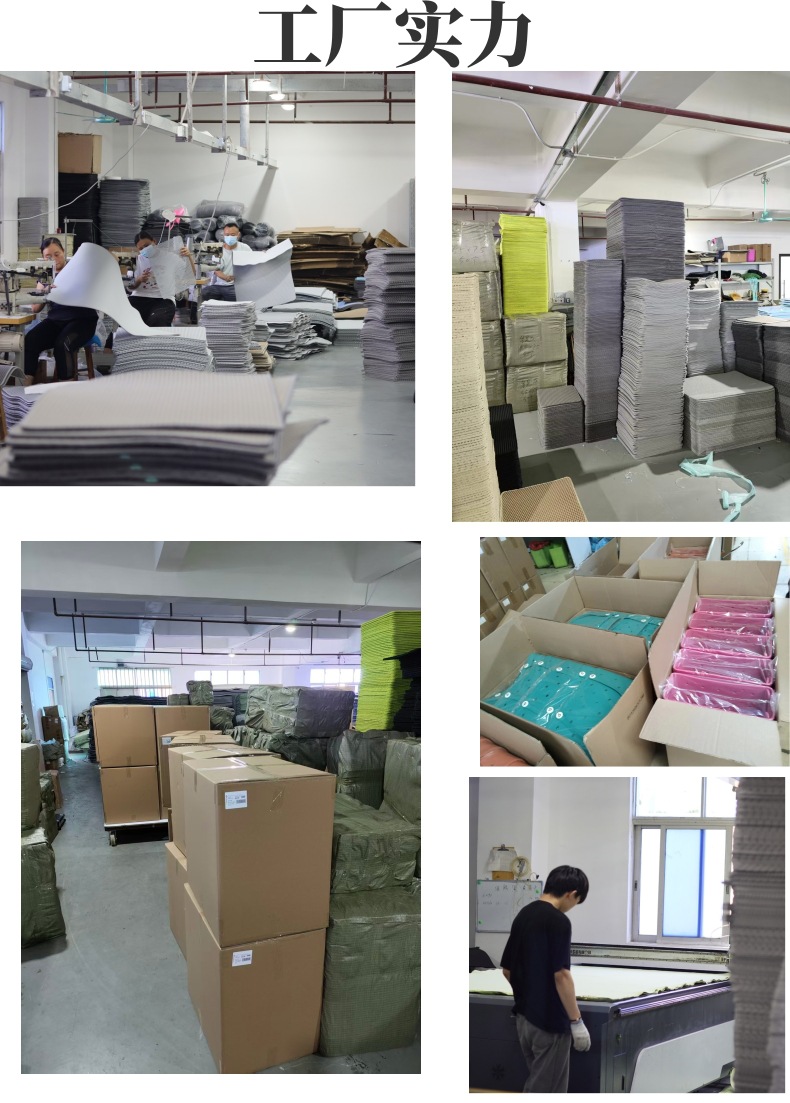 材质:上下一体的蜂窝状EVA,采用四边全包式缝纫工艺。
