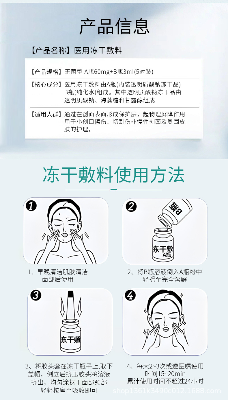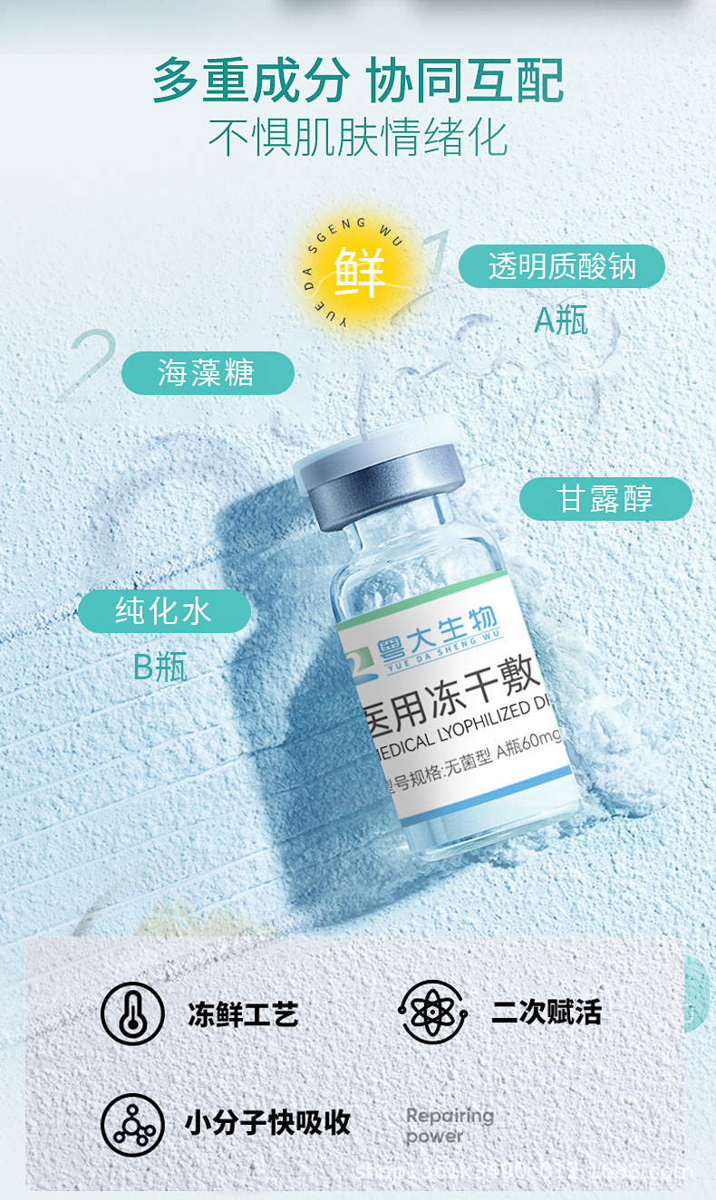 Медицинская лиофилизированная повязка, медицинская красота фотон, водное освежение, уход за заживлением ран, лиофилизированный порошок, медицинское стерильное оборудование