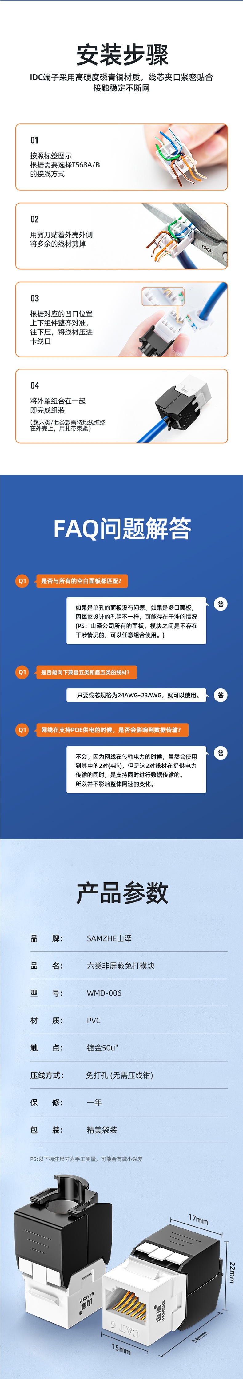 Модуль сети категории 6, гигабитный, неэкранированный RJ, защищенный категория 5E, 100м