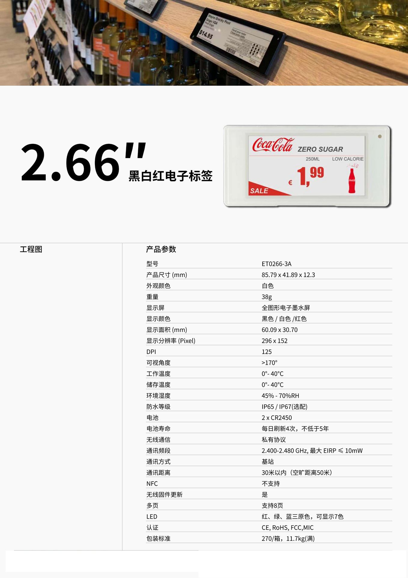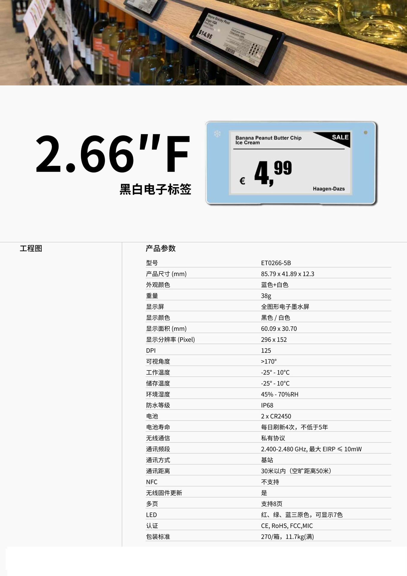 2.66 Цифровая этикетка Сетевой вариант Чернила Экран Цифровая ценник Полка Умная этикетка Супермаркет Черно-белый ценник