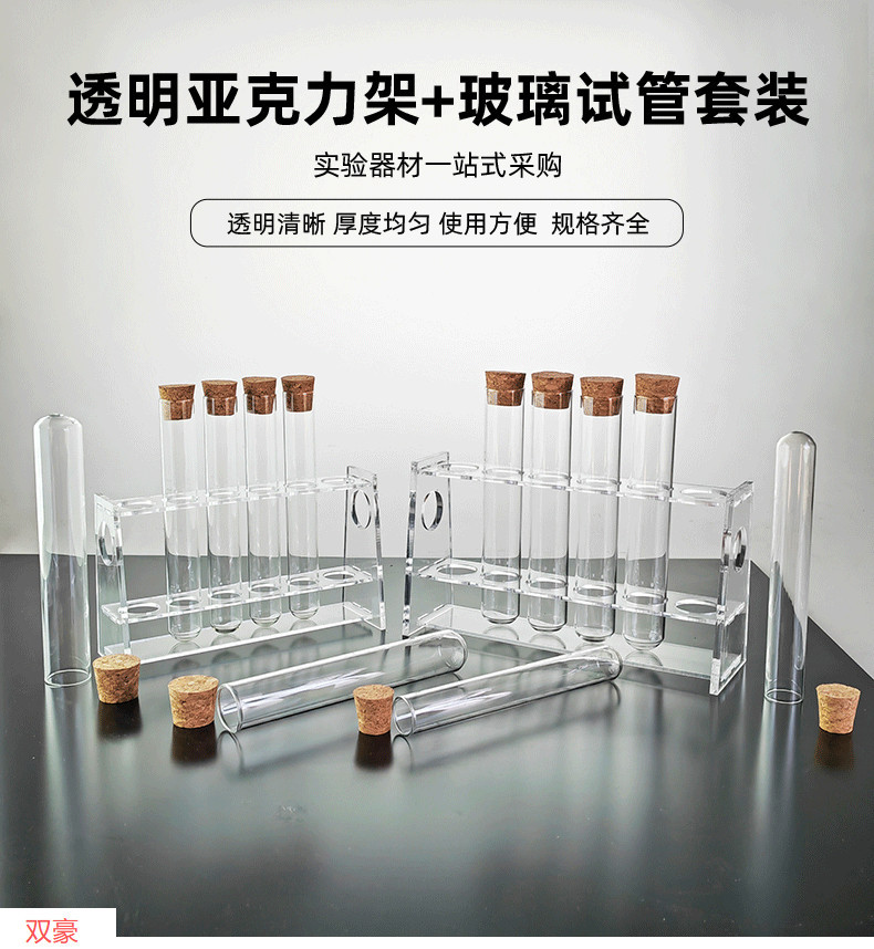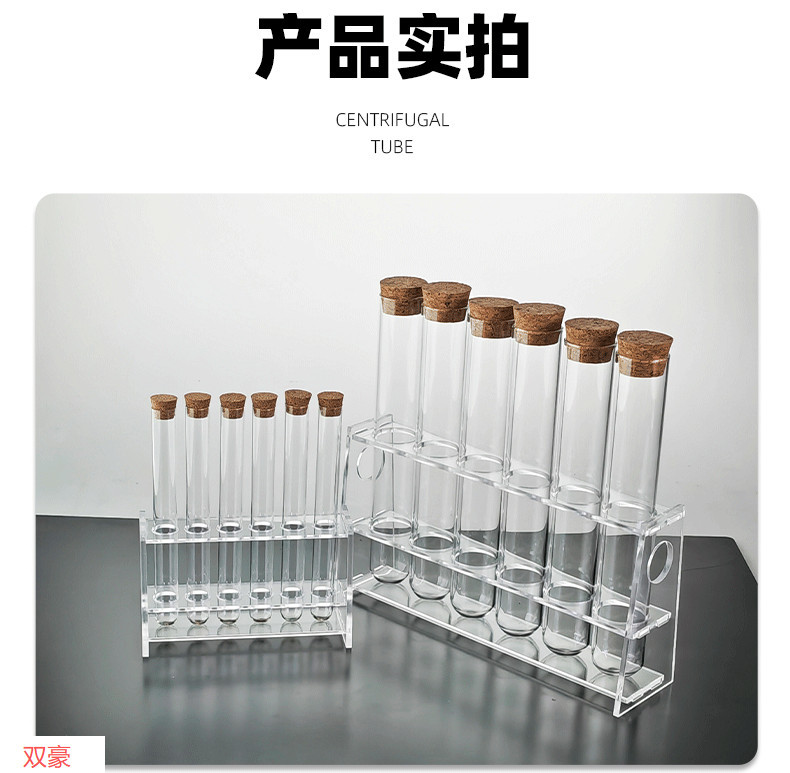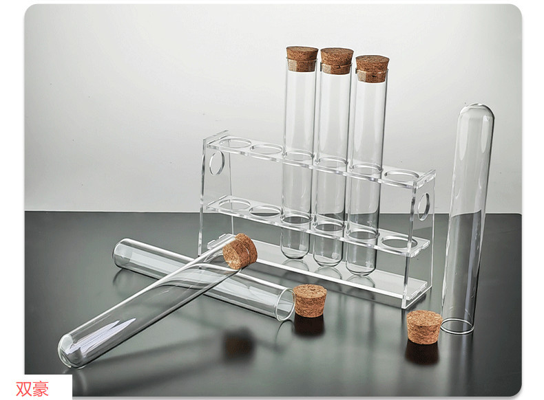 Упаковка 6 шт, стеклянные пробирки 20/25/30*150 с деревянной пробкой + одноуровневая стойка для пробирок на 6 отверстий